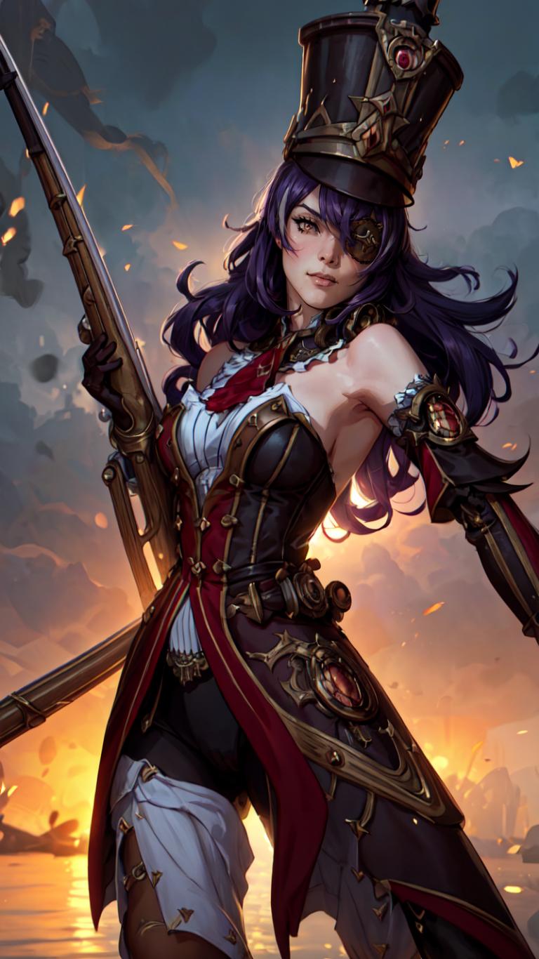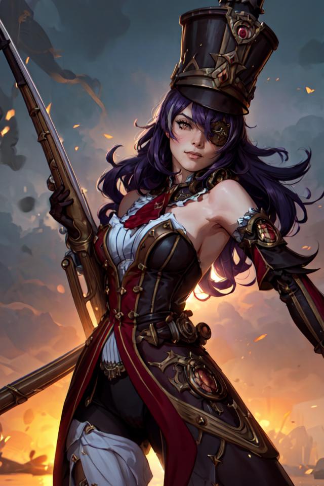 | Prompt | <lora:Chevreuse:0.9>chevreuse, bare_shoulders, gloves, pantyhose, long purple_hair in the wind, white_thighhighs, thigh_boots, ,solo,