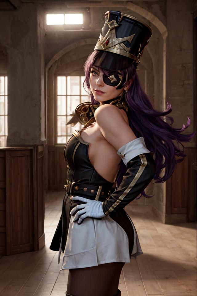 | Prompt | <lora:Chevreuse:0.9>chevreuse, bare_shoulders, gloves, pantyhose, long purple_hair in the wind, white_thighhighs, thigh_boots, ,solo, shako_cap,