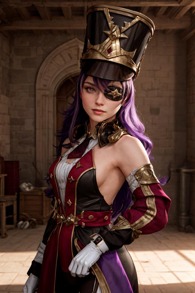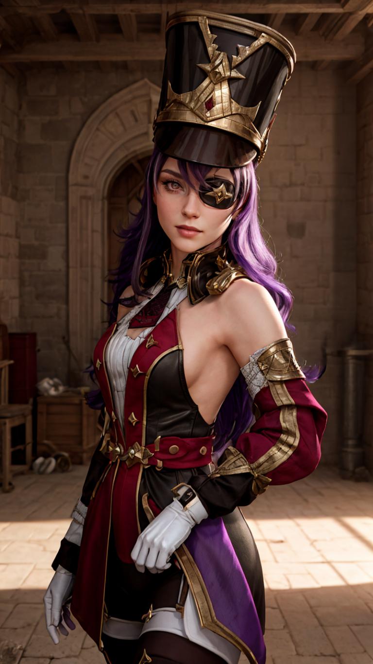| Prompt | <lora:Chevreuse:0.9>chevreuse, bare_shoulders, gloves, pantyhose, long purple_hair in the wind, white_thighhighs, thigh_boots, ,solo, shako_cap,