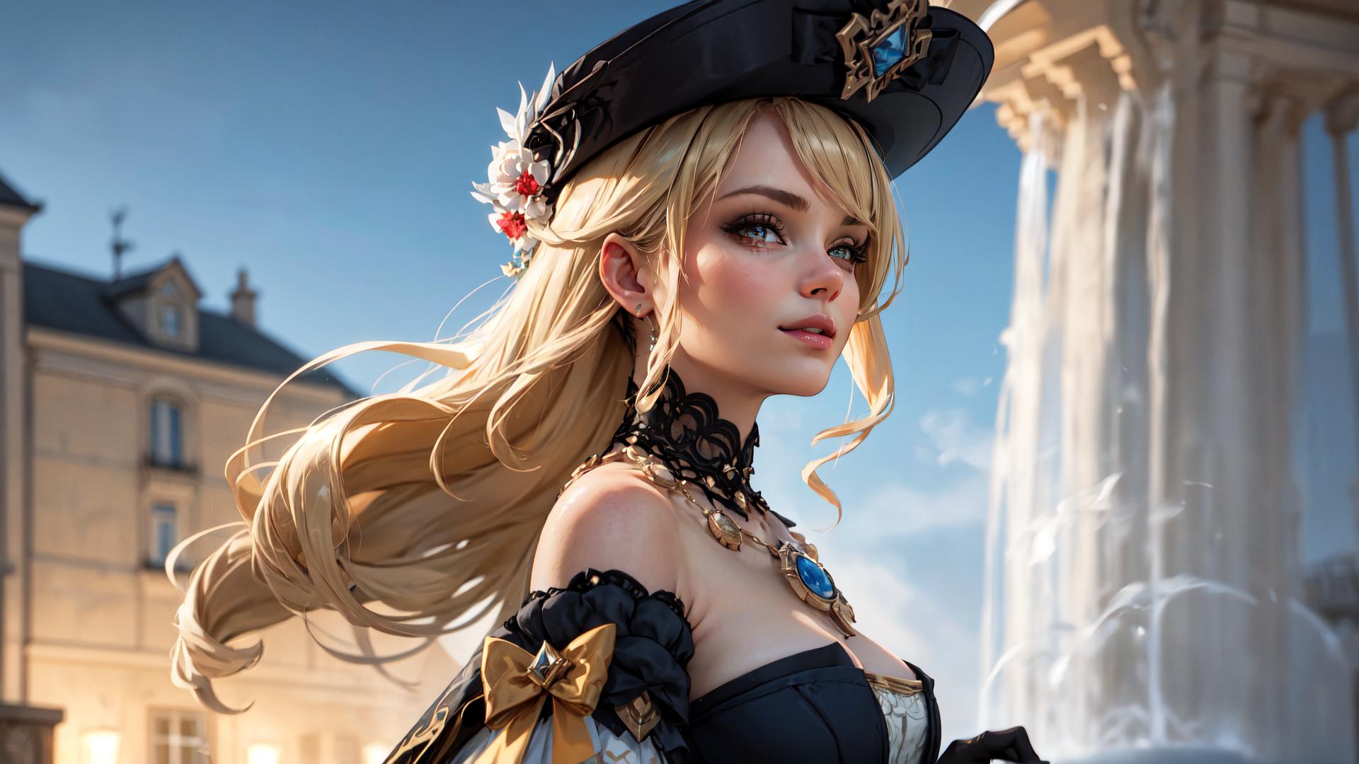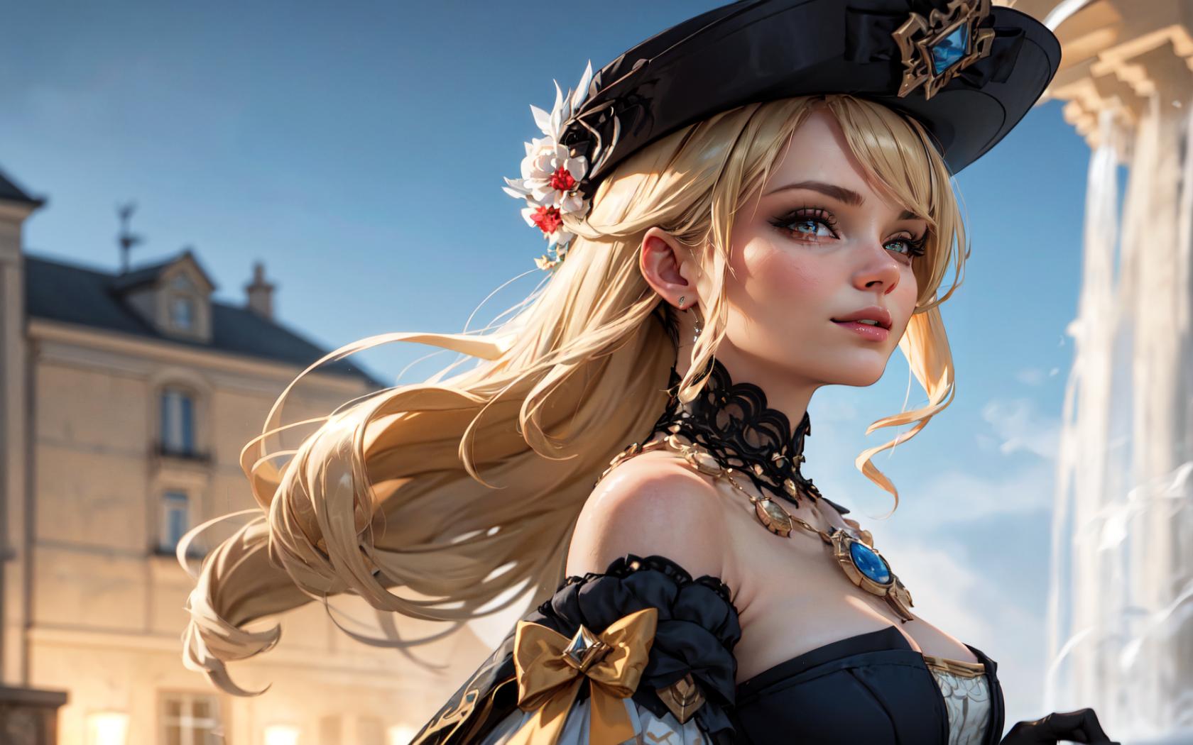 | Prompt | <lora:Char-Genshin-Navia-v2.0:0.8> navia \(genshin impact\), fancy hat, thigh boots, detached sleeves, single glove, strapless dress, detached collar, showgirl skirt, necklace, waist cape, ((close)) side view, hair in the wind,((wind)), staring at viewer, sweet, cute,motherly smile, deep intensive benevolent glance,