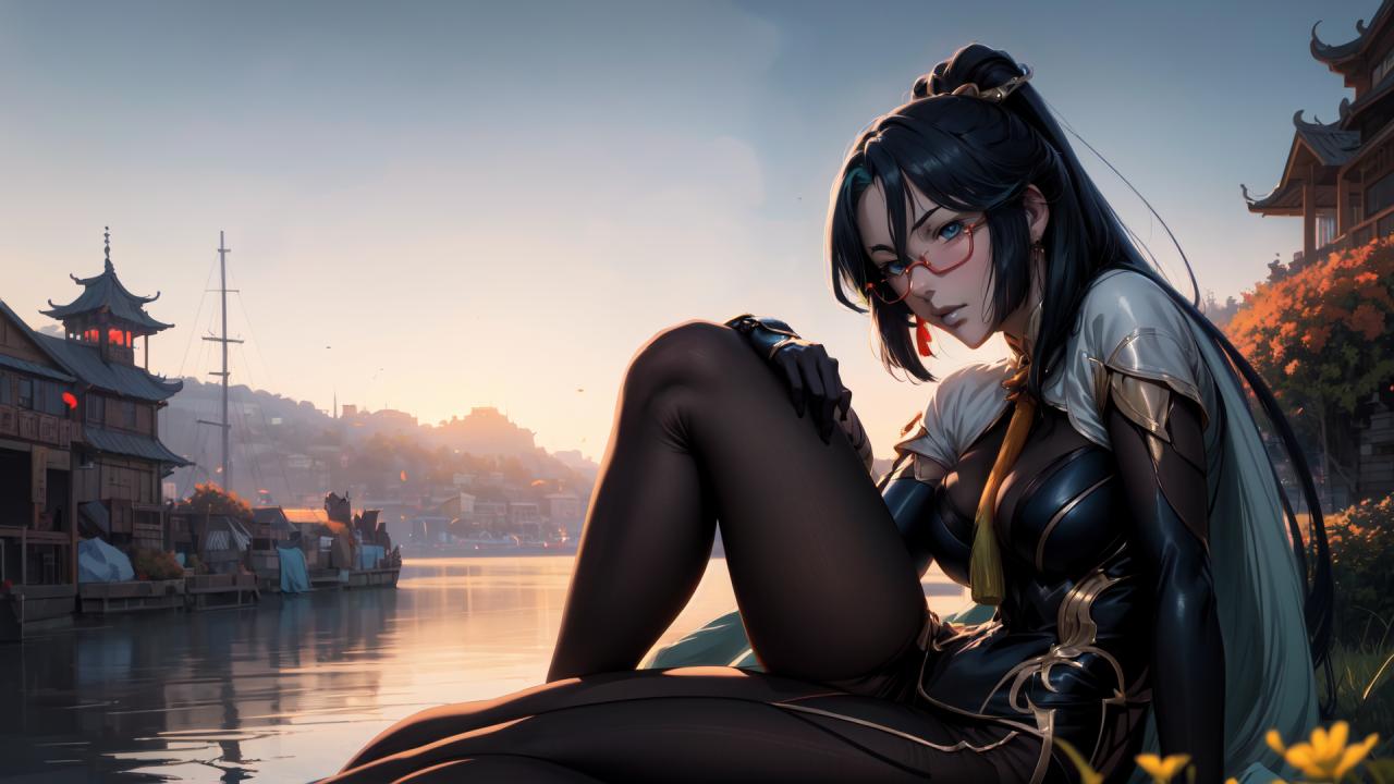 | Prompt | <lora:Xianyun:0.8>long hair, blue eyes, glasses, semi-rimless eyewear, ponytail, multicolored hair, hair ornament, earrings, chinese clothes, bodysuit, elbow gloves, dress,