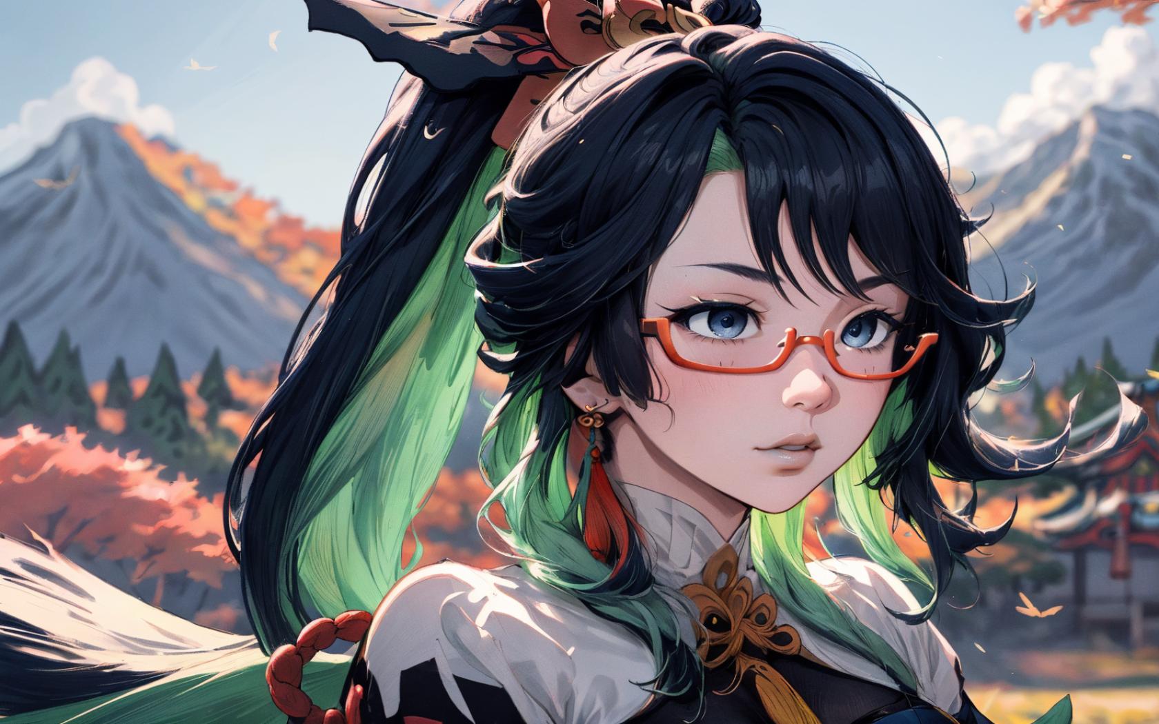 | Prompt | <lora:Xianyun:1> long hair, blue eyes, glasses, semi-rimless eyewear, ponytail, multicolored hair, hair ornament, earrings, chinese clothes, bodysuit, elbow gloves, dress,