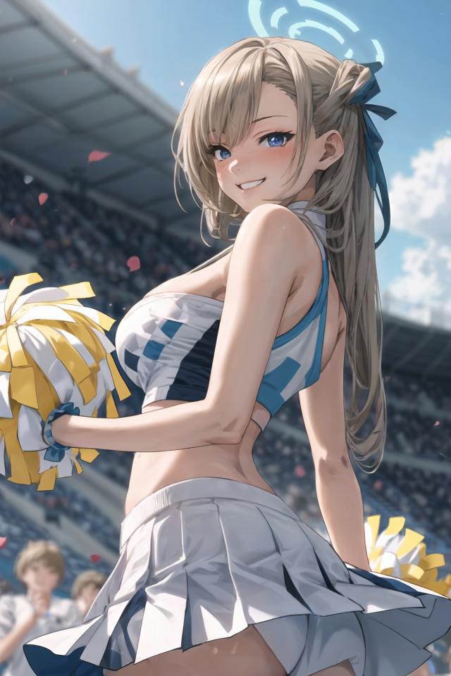 | Prompt | <lora:asuna1:1> asunacheer, blonde hair, ((solo)),cheerleader,dancing,