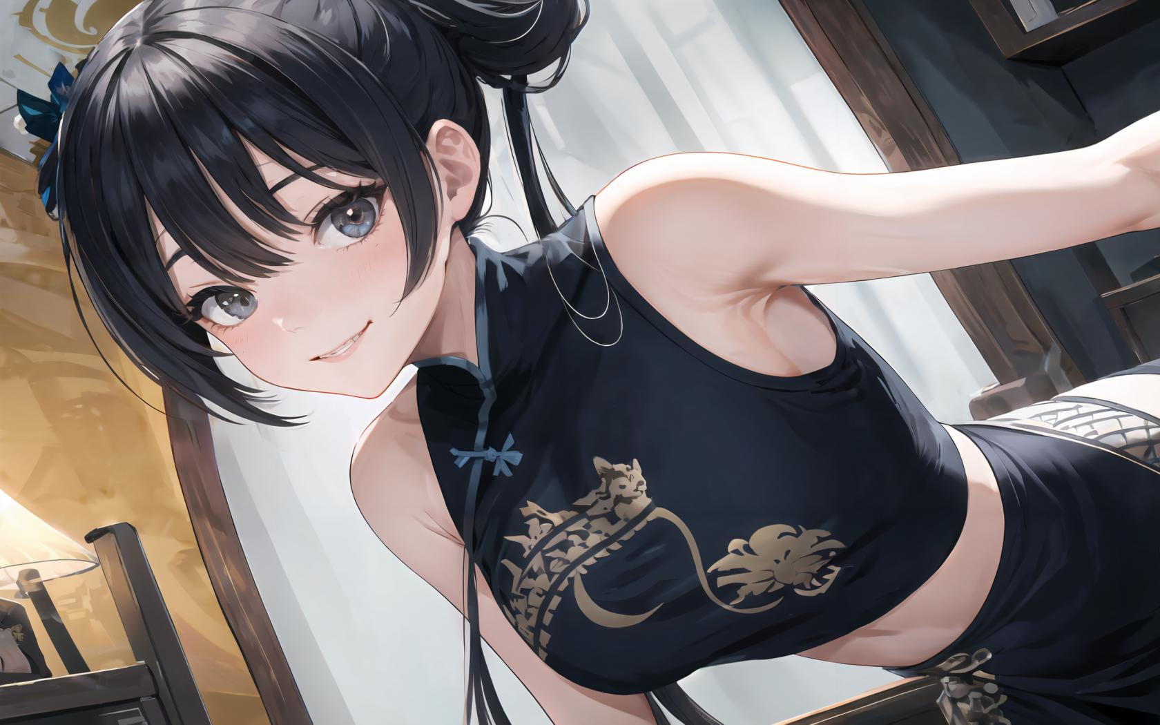 Prompt <lora:kisaki:0.8> kisaki(blue archive),chinese dress,((solo)), seductive pose, enigmatic smile, cute, kawai,