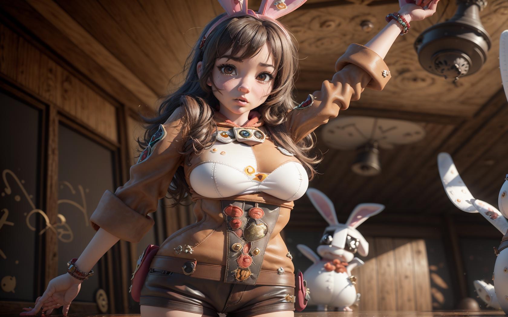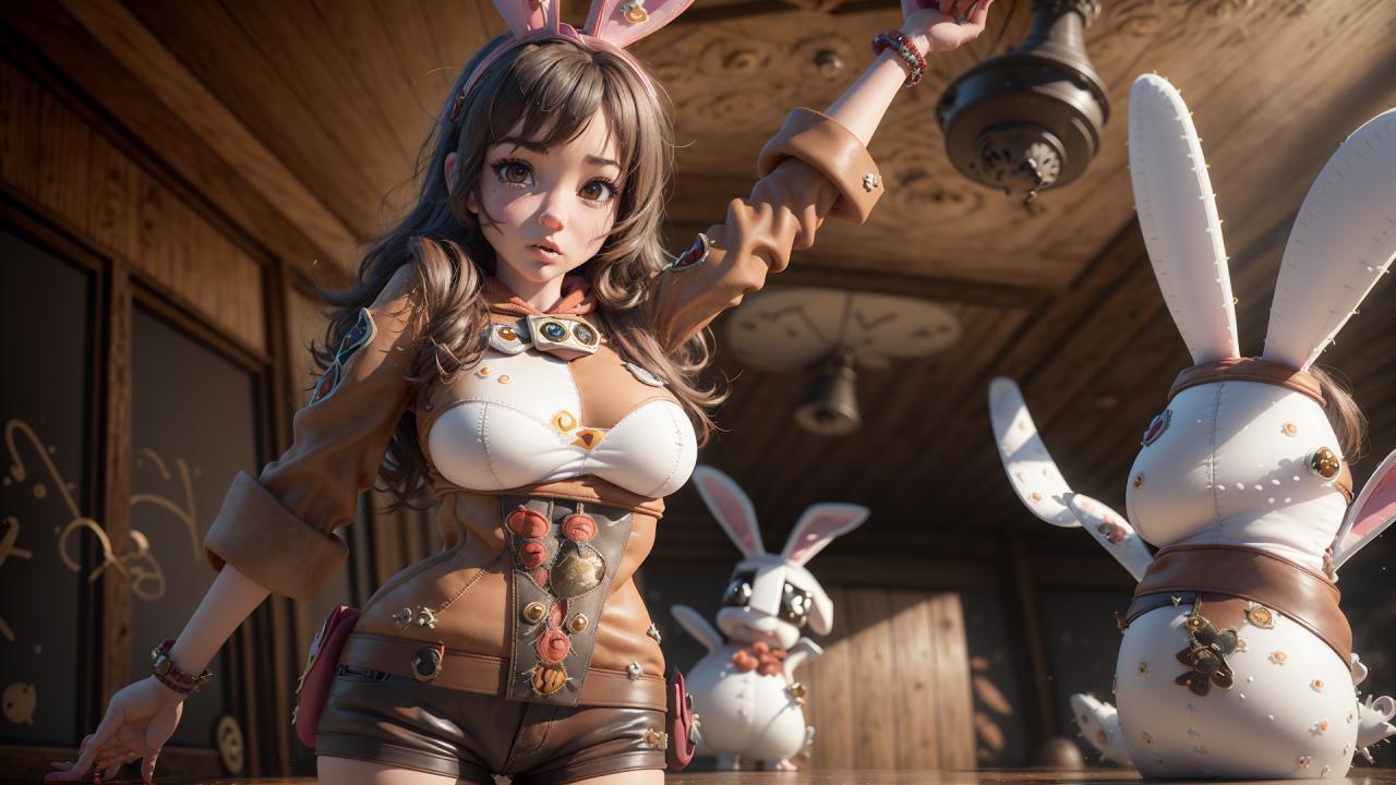 | Prompt | (realistic, 3d pixar style:1.4), (surrounded by Rabbids:1.5), <lora:amber1:1>,amber5star,1girl, hairband, long brown hair, autumn, fall, trees, flowers, inside an haunted forest at fall, mist, cowboy shot, |