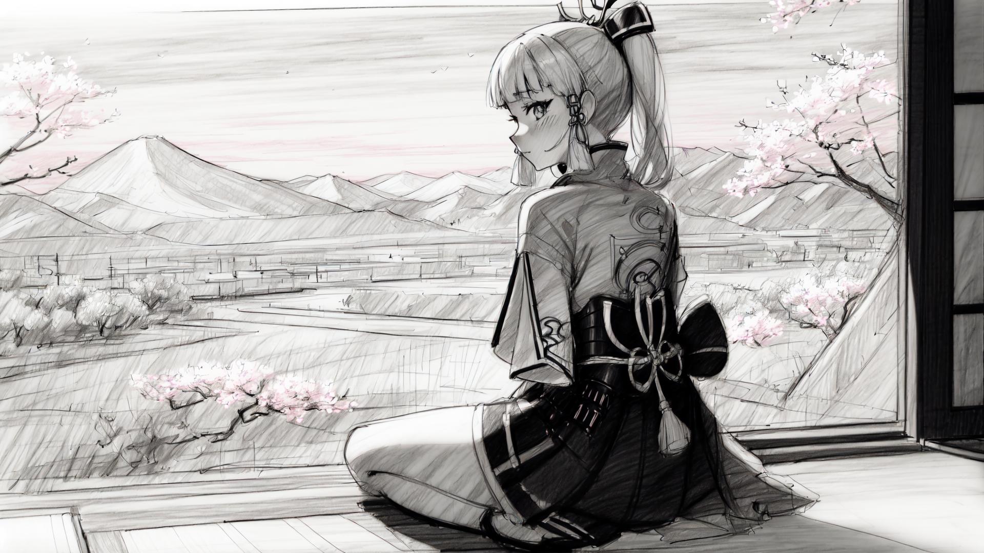 | Prompt | <lora:kamisatoayaka1:1>((kamisatoayakadef)),solo,grey white hair,