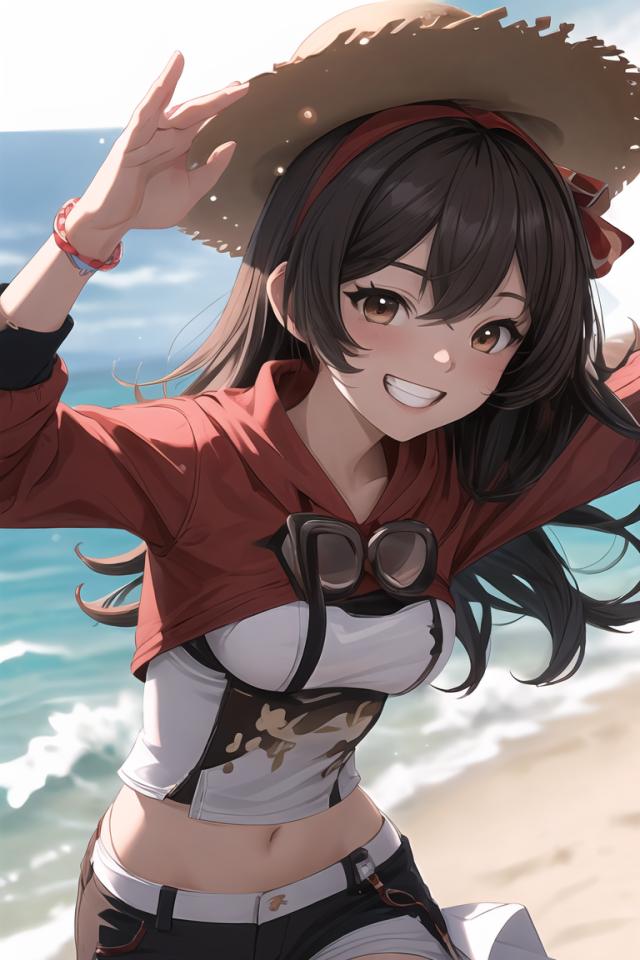 | Prompt | <lora:amber1:0.95>, 1girl, amberdef, brown hair, grin, v, hair ribbon, (straw hat),