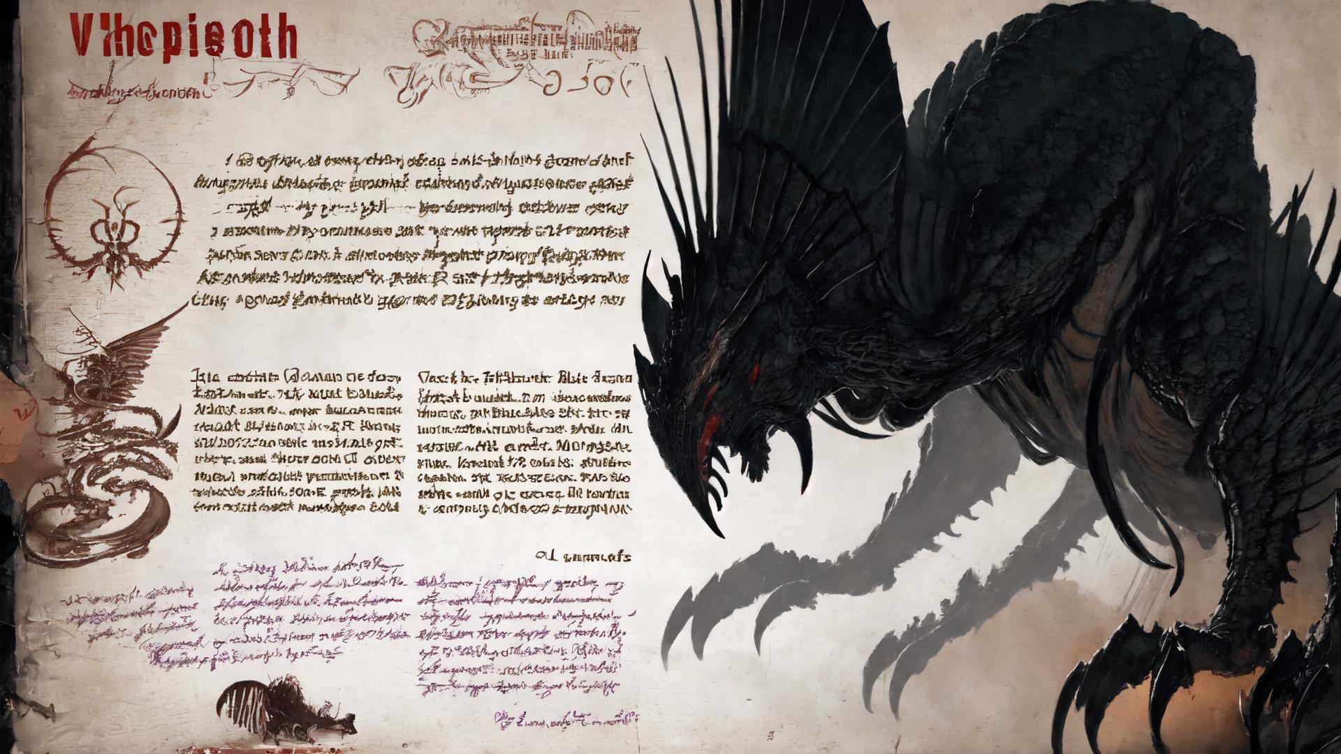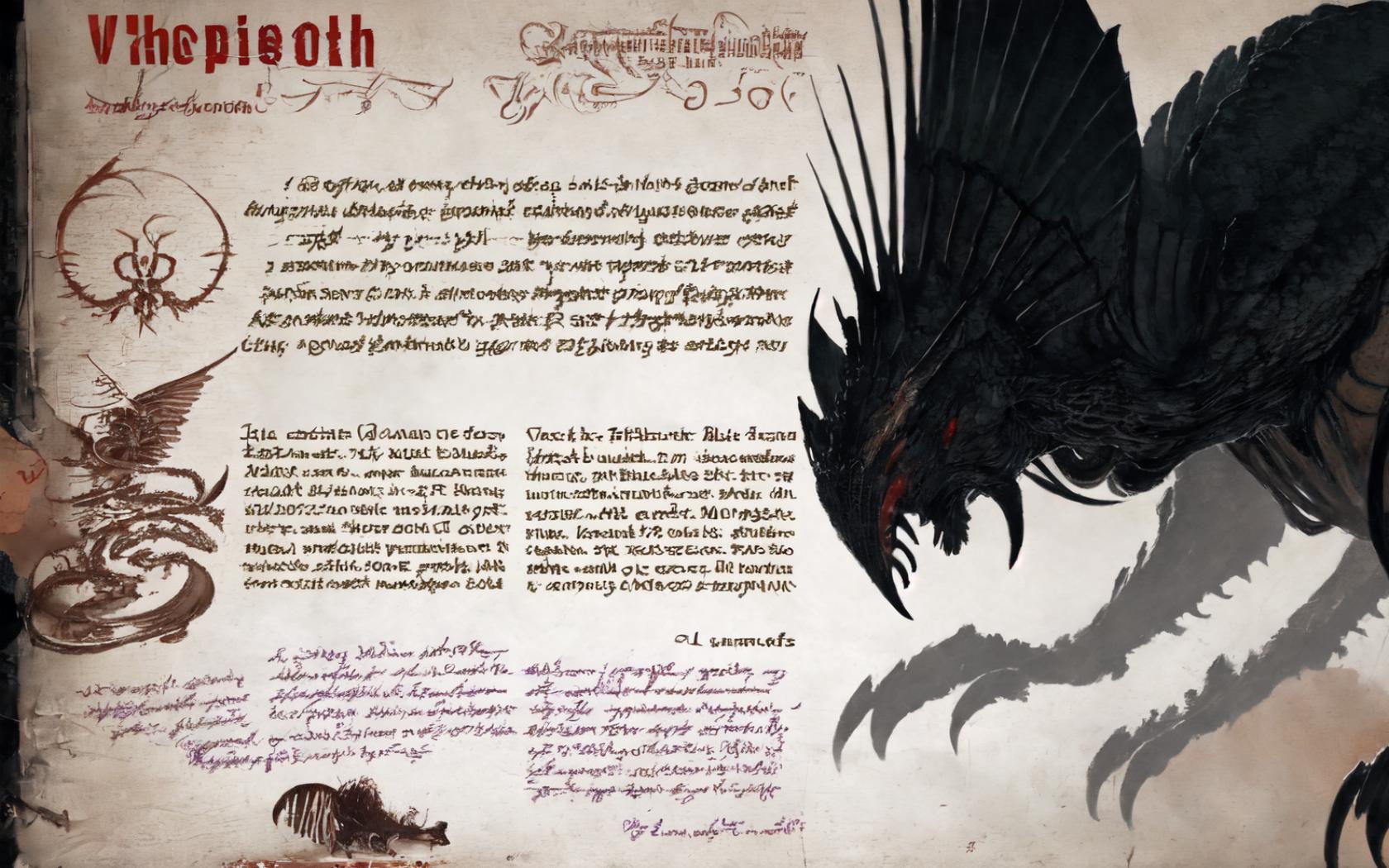 monster,text focus,wings, text focus, 1boy, character profile, monster,cthulhu monster,