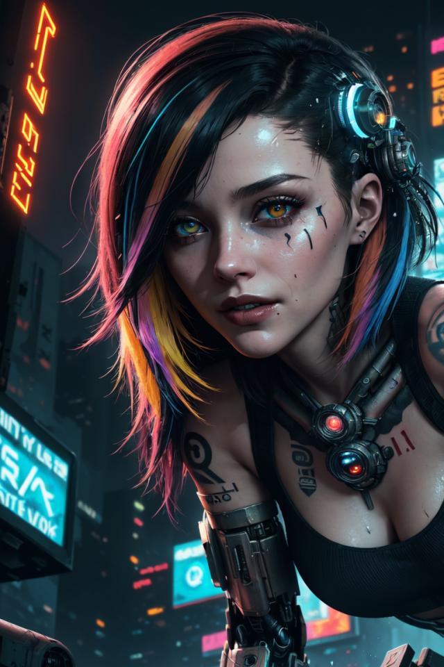 | Prompt | portrait of cyperpunk cyborg girl looking at viewer, ((((close-up)))),