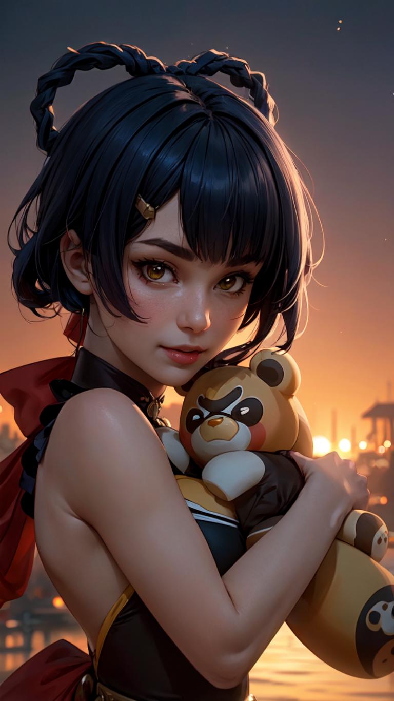 BREAK ((hugging guoba (genshin impact))), BREAK photorealistic, octane render,(hyperrealistic:1.2),(photorealistic face:1.2),(1girl:1.4),(skindentation:1.3),best quality,dynamic pose,sharp focus,(8k), (4k),(Masterpiece), (Best Quality), fantasy, extremely detailed, intricate, hyper detailed, (perfect face), illustration, ray tracing, light particles, (depth of field), <lora:more_details:0.3> |