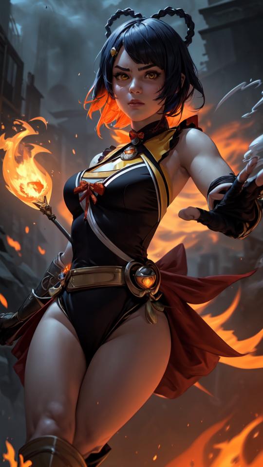 BREAK ((guoba (genshin impact))), BREAK ((((fire, flames, embers,smoke)))), BREAK (epic:1.9), (heroic fantasy:1.7), photorealistic, octane render,(hyperrealistic:1.2),(photorealistic face:1.2),(1girl:1.4),(skindentation:1.3),best quality,dynamic pose,sharp focus,(8k), (4k),(Masterpiece), (Best Quality), fantasy, extremely detailed, intricate, hyper detailed, (perfect face), illustration, ray tracing, light particles, (depth of field), <lora:more_details:0.3> <lora:kVoidEnergy:0.3> glowing orange V0id3nergy |