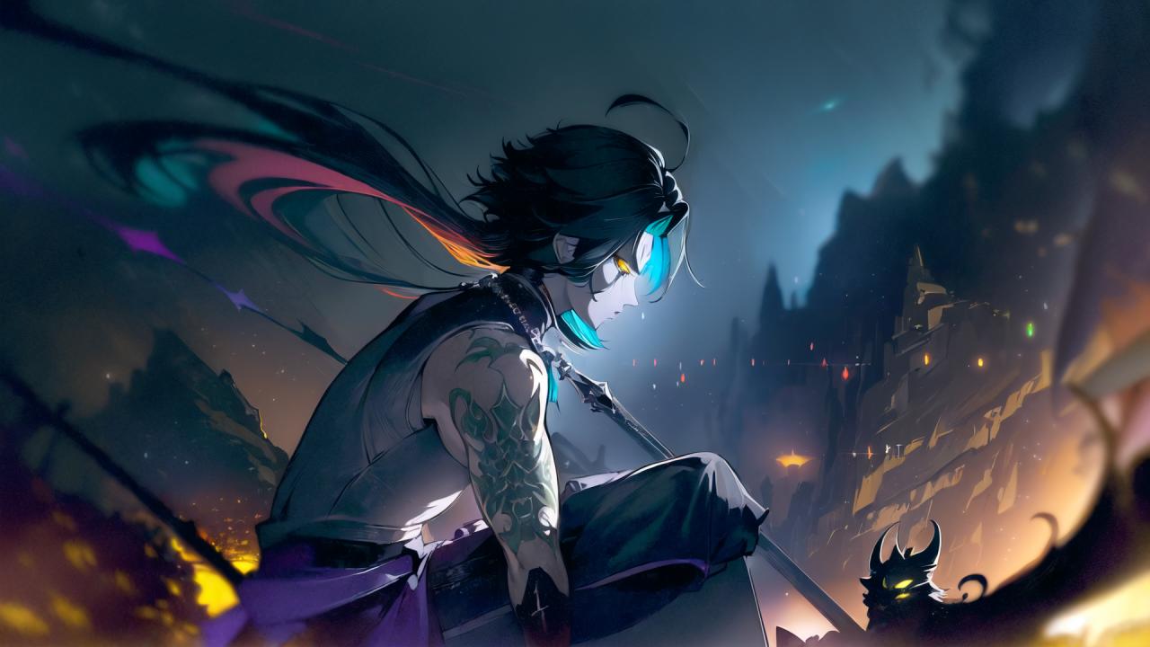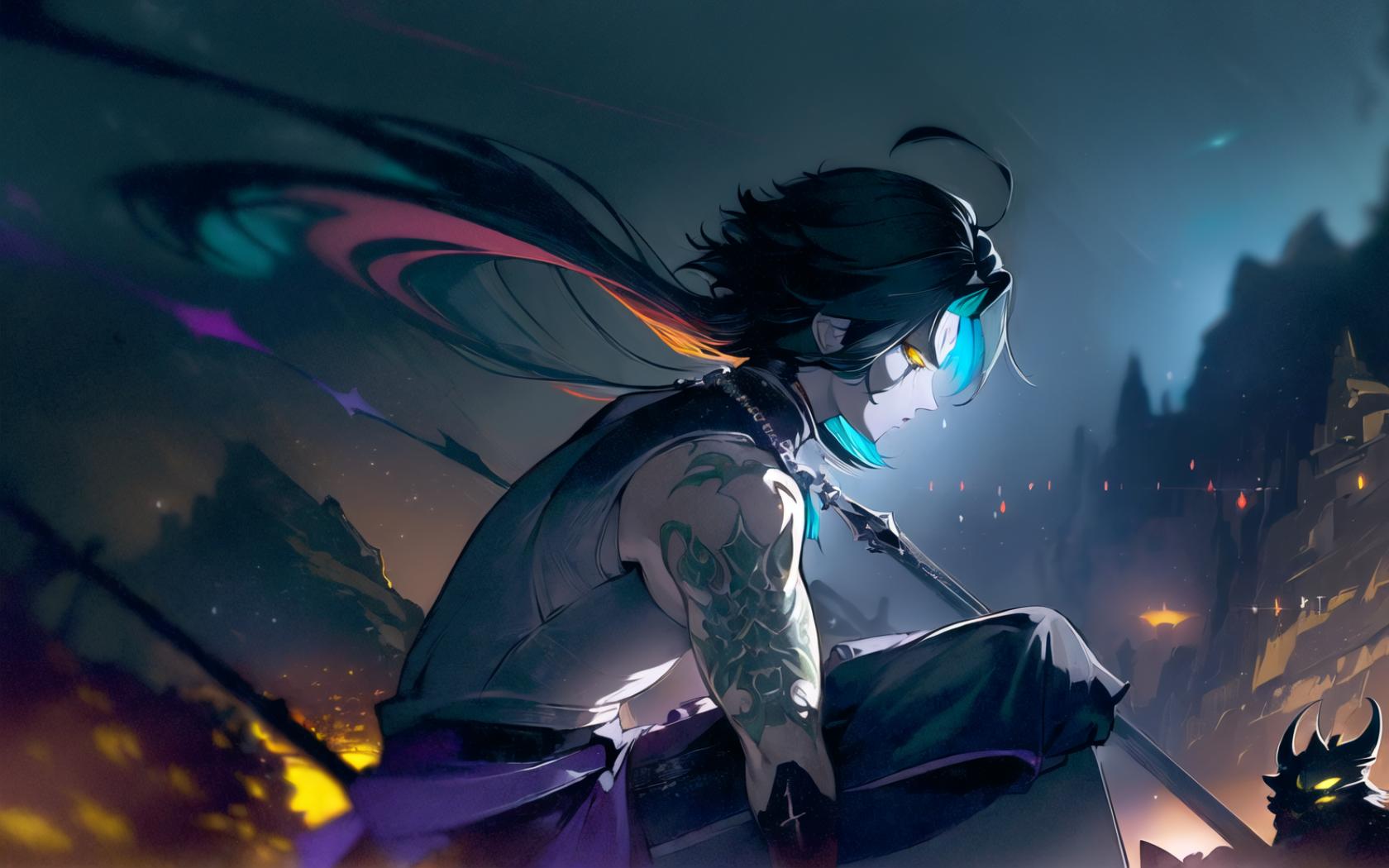 | Prompt | (dark fantasy art:1.7), (apocalytic art:1.4), (epic:1.2, perfect artwork), best quality,dynamic pose,sharp focus,(8k), (4k),(Masterpiece), (Best Quality), fantasy, extremely detailed, intricate, (highly detailed:1.4), hyper detailed, (perfect face), illustration,soft lighting,(specular lighting:1.4), Ultra detailed fantasy environment, clearly worked out detail, intricate, cinematic,(depth of field), (heroic:1.2), (dramatic light:1.1), <lora:Genshin_Xiao_AP_v9:1>,1boy, male focus, yellow eyes,official, ((((muscular)))), (mask:1.2), (twilight, sunset),wind,autumn, fall, aurora borealis, outdoors, medieval chinese harbor, medieval chinese town, (cliffs), (top of a cliff:1.2) polearm, (holding polearm:1.2), (fighting chinese demon:1.4), angry, |