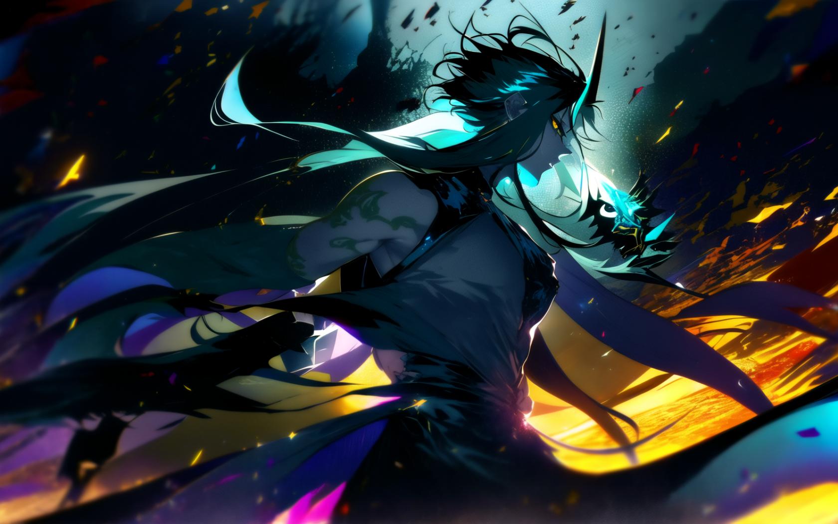 | Prompt | <lora:beautiful-eyes:1>, (dark fantasy art:1.05), (apocalytic art:1.05), , (dark atmosphere, horror:1.05), (epic:1.2, perfect artwork), best quality,dynamic pose,sharp focus,(8k), (4k),(Masterpiece), (Best Quality), fantasy, extremely detailed, intricate, (highly detailed:1.4), hyper detailed, (perfect face), illustration,soft lighting,(specular lighting:1.4), Ultra detailed fantasy environment, clearly worked out detail, intricate, cinematic,(depth of field), (heroic:1.2), (dramatic lighting:1.3), <lora:Genshin_Xiao_AP_v9:1>,1boy, male focus, yellow eyes,official, (((muscular))), (((wearing demon mask))), (twilight, sunset),wind,autumn, fall, outdoors, (moon, moonrays), wind, (giant mystic tree, cliffs), (top of a cliff:1.1), medieval chinese town below, <lyco:UnlimitedBladeWorksv0.4:0.7>, (holding green and black Scythe:1.1), (walking to viewer:1.3), glowing yellow eyes, light smile, ( looking at viewer, cowboy shot:1.4), |