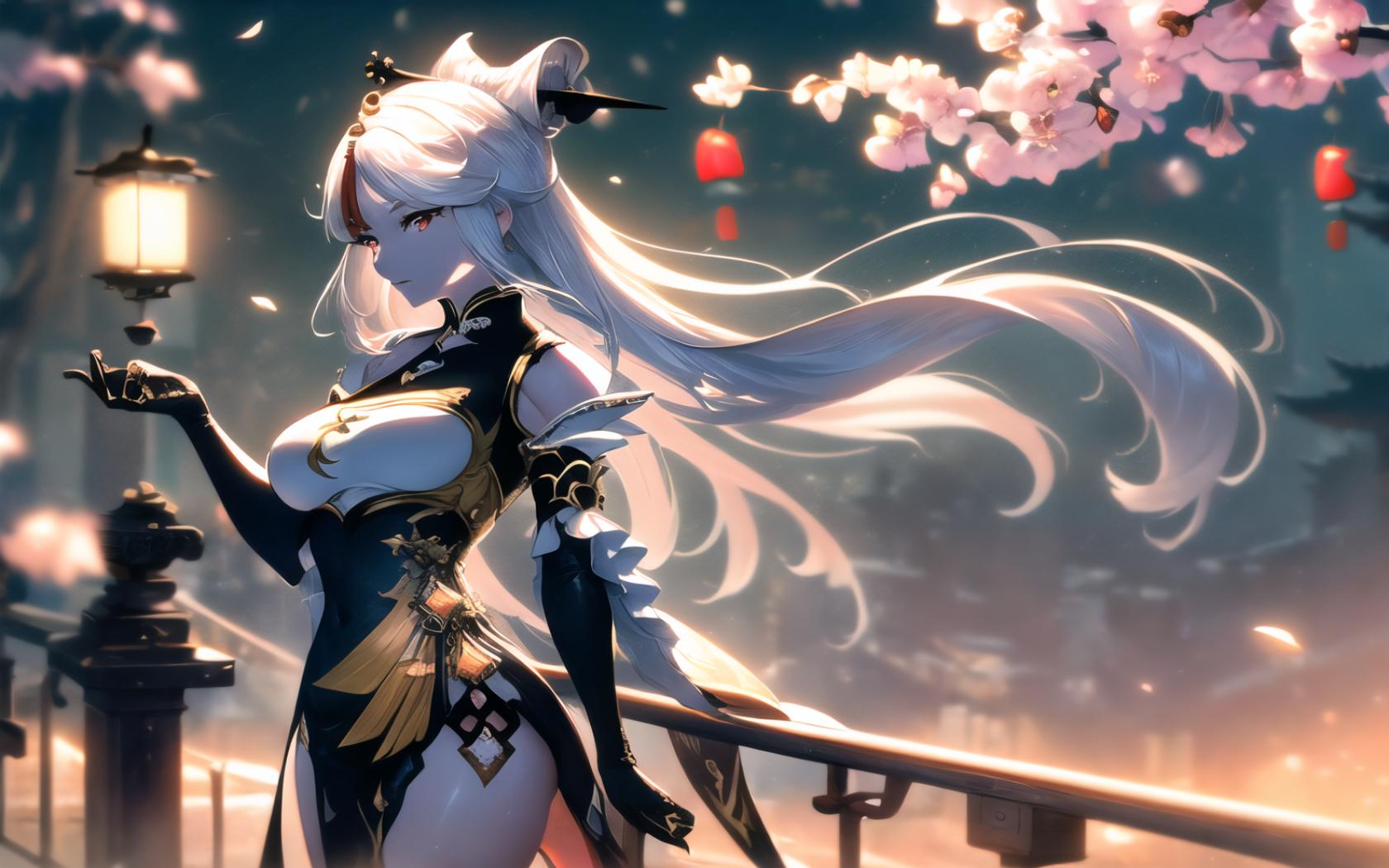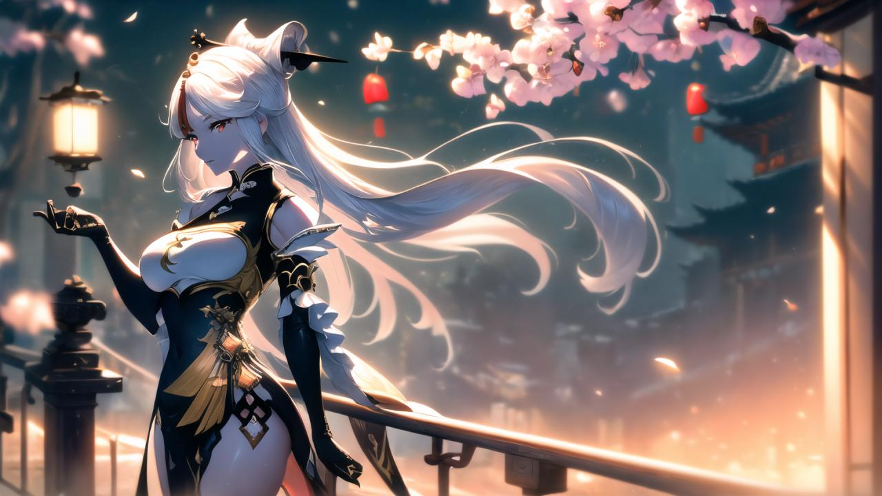 | Prompt | (highly detailed:1.5), (realistic:1.05),(digital art:1.7),(romantic:1.4), <lora:beautiful-eyes:1>, (epic:1.1, perfect artwork), best quality,dynamic pose,sharp focus,(8k), (4k),(Masterpiece), (Best Quality), fantasy, extremely detailed, intricate, hyper detailed, (perfect face), illustration,soft lighting, Ultra detailed fantasy environment, clearly worked out detail, intricate, cinematic,(depth of field), (dramatic lighting:1.2), <lora:ningguang2:1>ningguangdef, (mature:1.4), large breasts,1girl, solo, (sunrise), (sakura trees), spring, sakura, sakura leaves in the wind, outdoors, (standing upright), (slowly walking front a chinese medieval temple), (chinese medieval harbor below), light smile, (sexy), proud, confident, (looking at viewe), full body, |