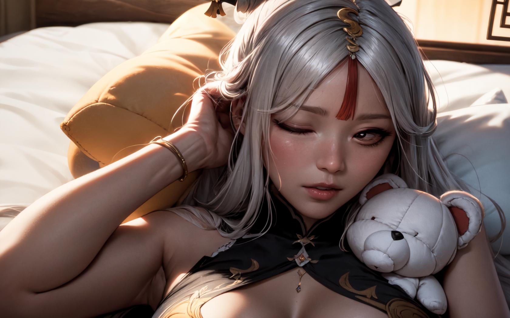 | Prompt | <lora:ningguang2:1> ningguangrnd, medium breasts,long white hair,