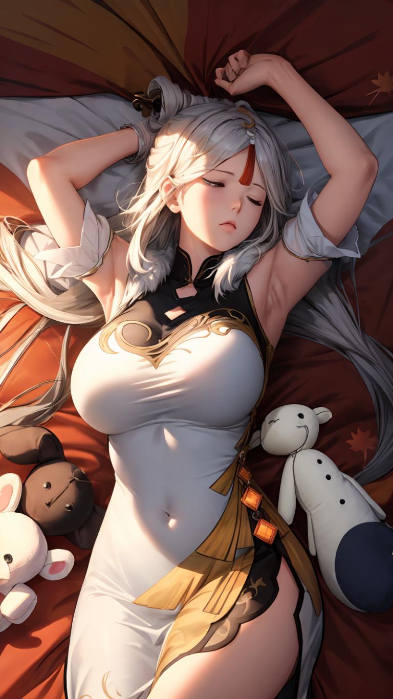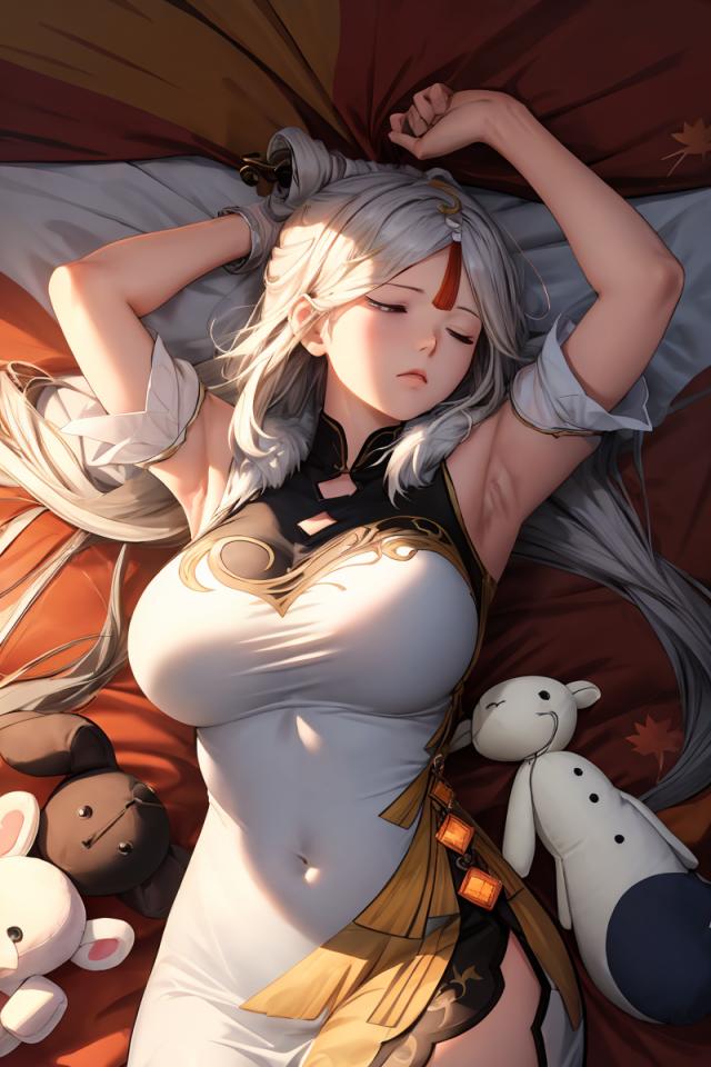 | Prompt | <lora:ningguang2:1> ningguangrnd, medium breasts,long white hair,