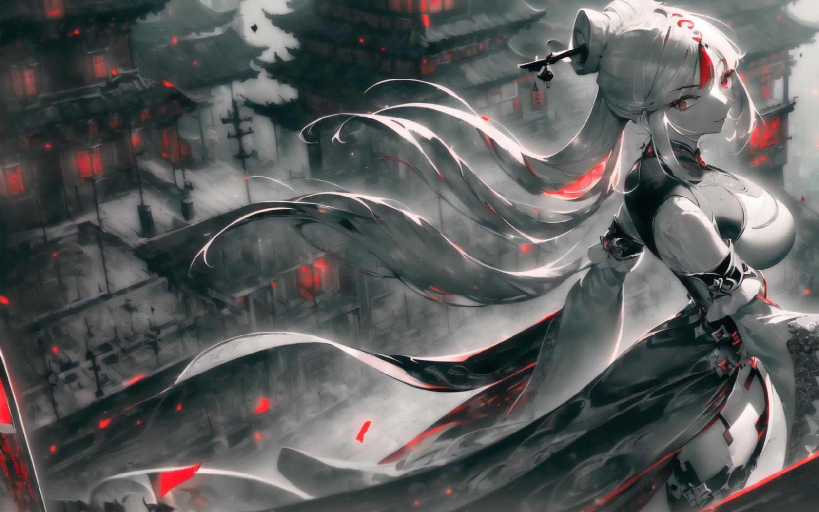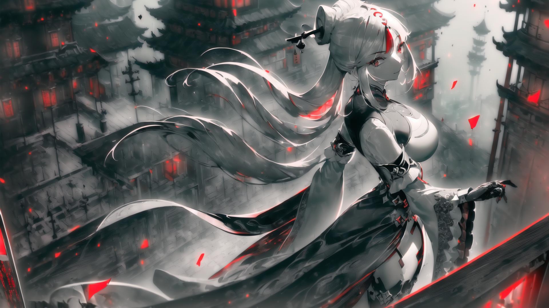 | Prompt | (black, grey and red and theme:2), (dramatic:1.9), (highly detailed:1.5), (realistic:1.05),(digital art:1.7),(romantic:1.4), <lora:beautiful-eyes:1>, (epic:1.1, perfect artwork), best quality,dynamic pose,sharp focus,(8k), (4k),(Masterpiece), (Best Quality), fantasy, extremely detailed, intricate, hyper detailed, (perfect face), illustration,soft lighting, Ultra detailed fantasy environment, clearly worked out detail, intricate, cinematic,(depth of field), (dramatic lighting:1.2), <lora:ningguang2:1>ningguangdef, (mature:1.4), large breasts,1girl, solo, (sakura trees), spring, sakura, sakura leaves in the wind, outdoors, (standing upright front a chinese medieval temple:1.2), (chinese medieval harbor below), light smile, (sexy), proud, confident, (looking at viewer), (view from behind:1.2), |