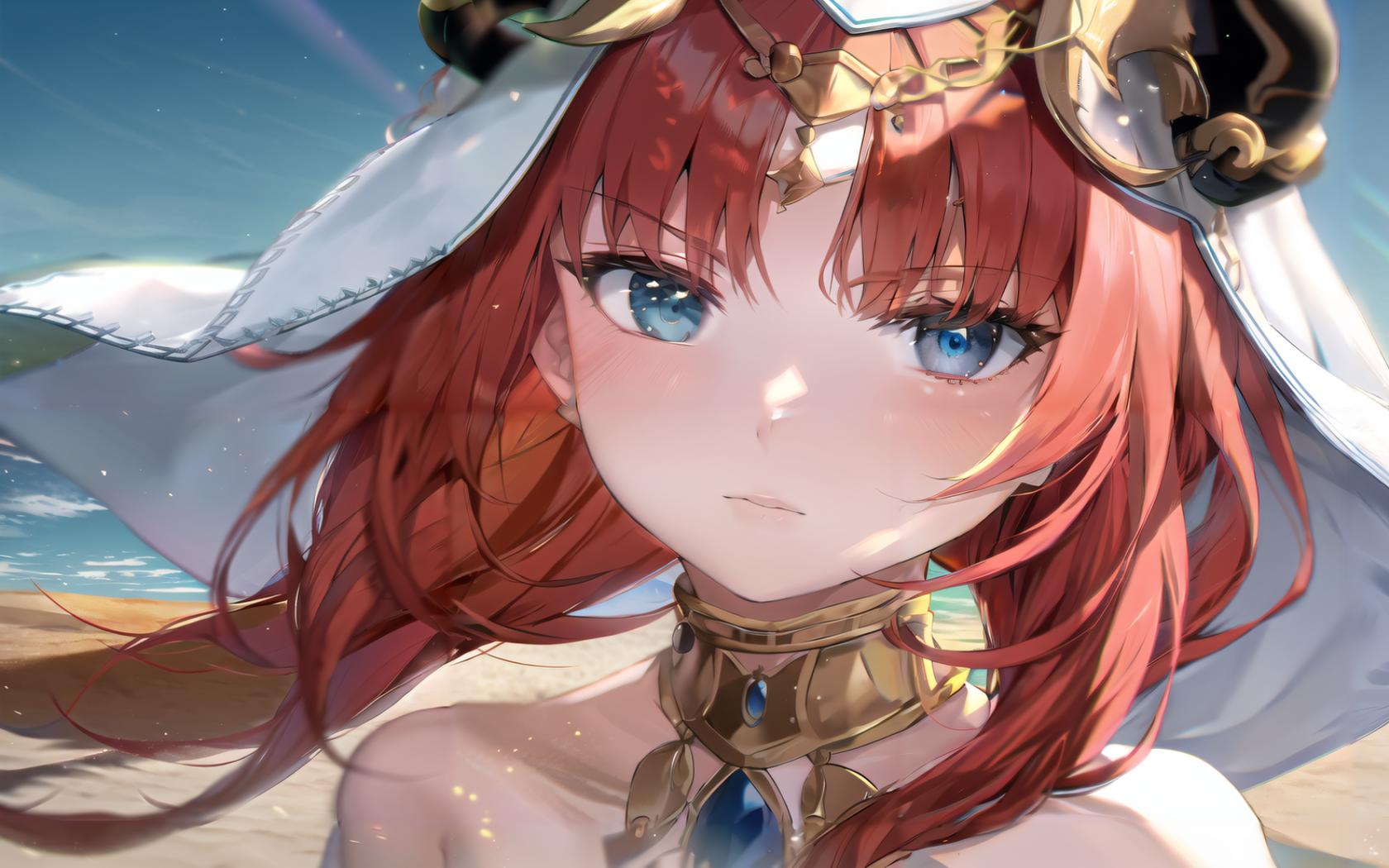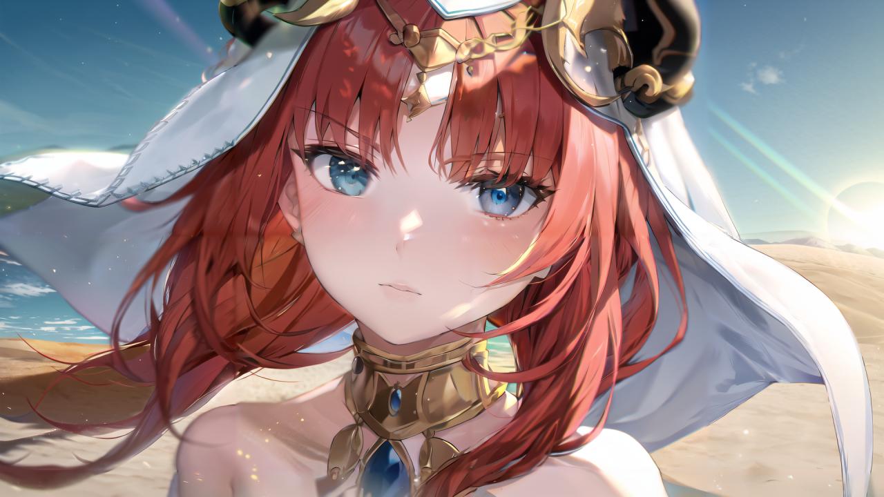 an anime avatar is staring up at something in the sky at sunset as she poses on a beach in front of a bright sun beams