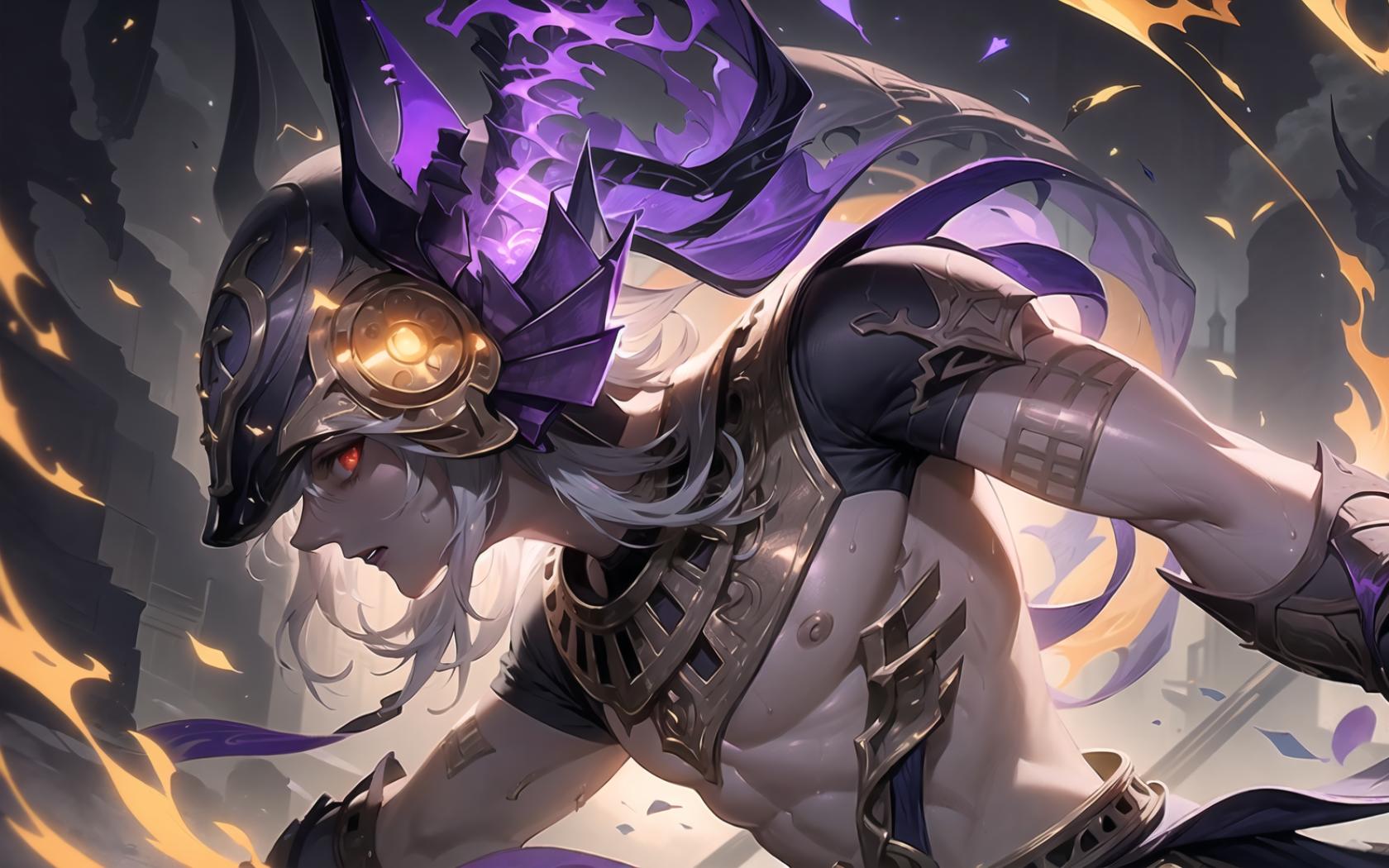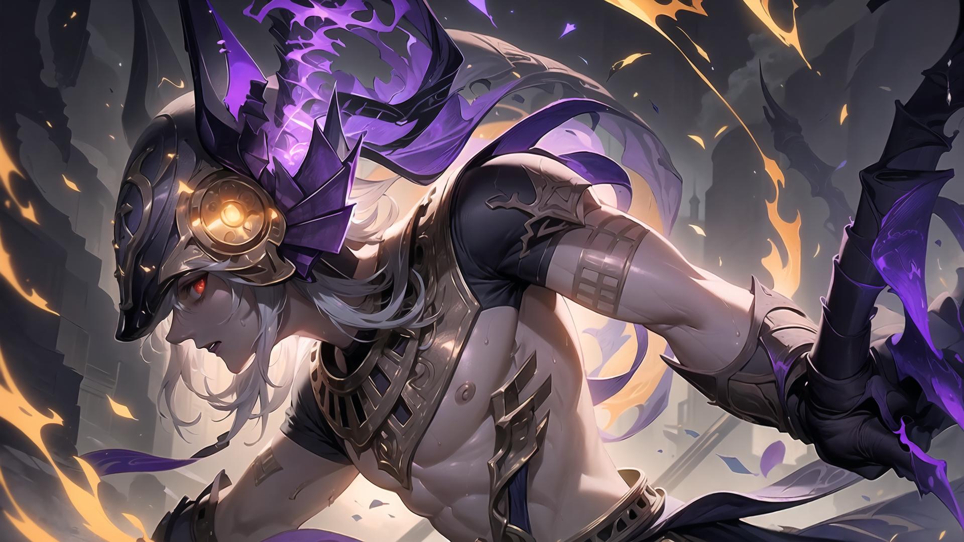1boy, abs, animal ears, bangs, black choker, black gloves, black headwear, choker, dark skin, dark-skinned male, eyelashes, from side, gem, gloves, glowing, hat, helmet, holding, holding polearm, holding weapon, jackal ears , jewelry, long hair, looking at viewer, male focus, necklace, nipples, open mouth, parted bangs, parted lips, polearm, profile, red eyes, short sleeves, sidelocks, sideways glance, solo, sweat, upper body, weapon, white hair