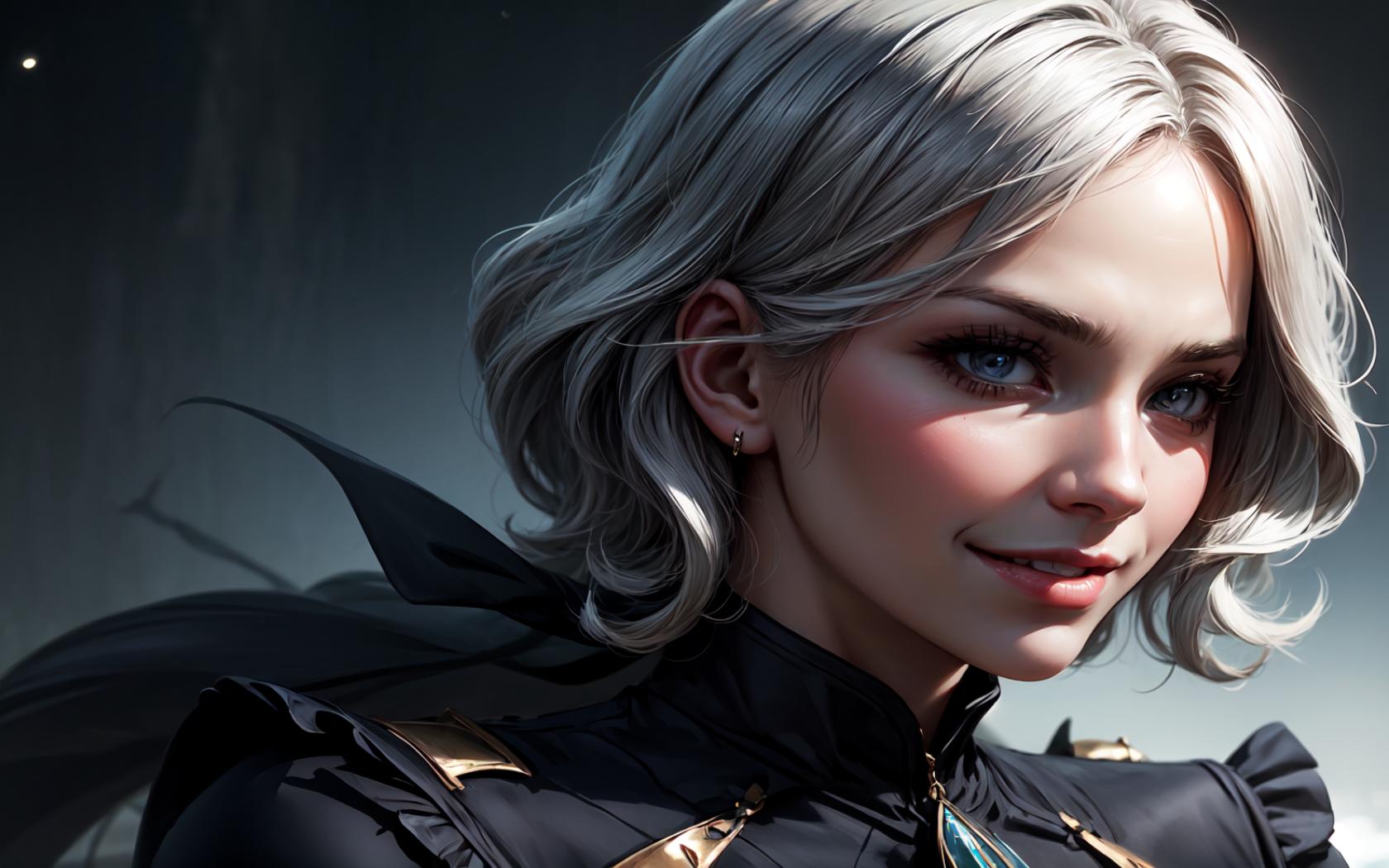 there is a woman that is dressed in black and blue clothes and has a diamond necklace with butterflies on it, which is adorned -