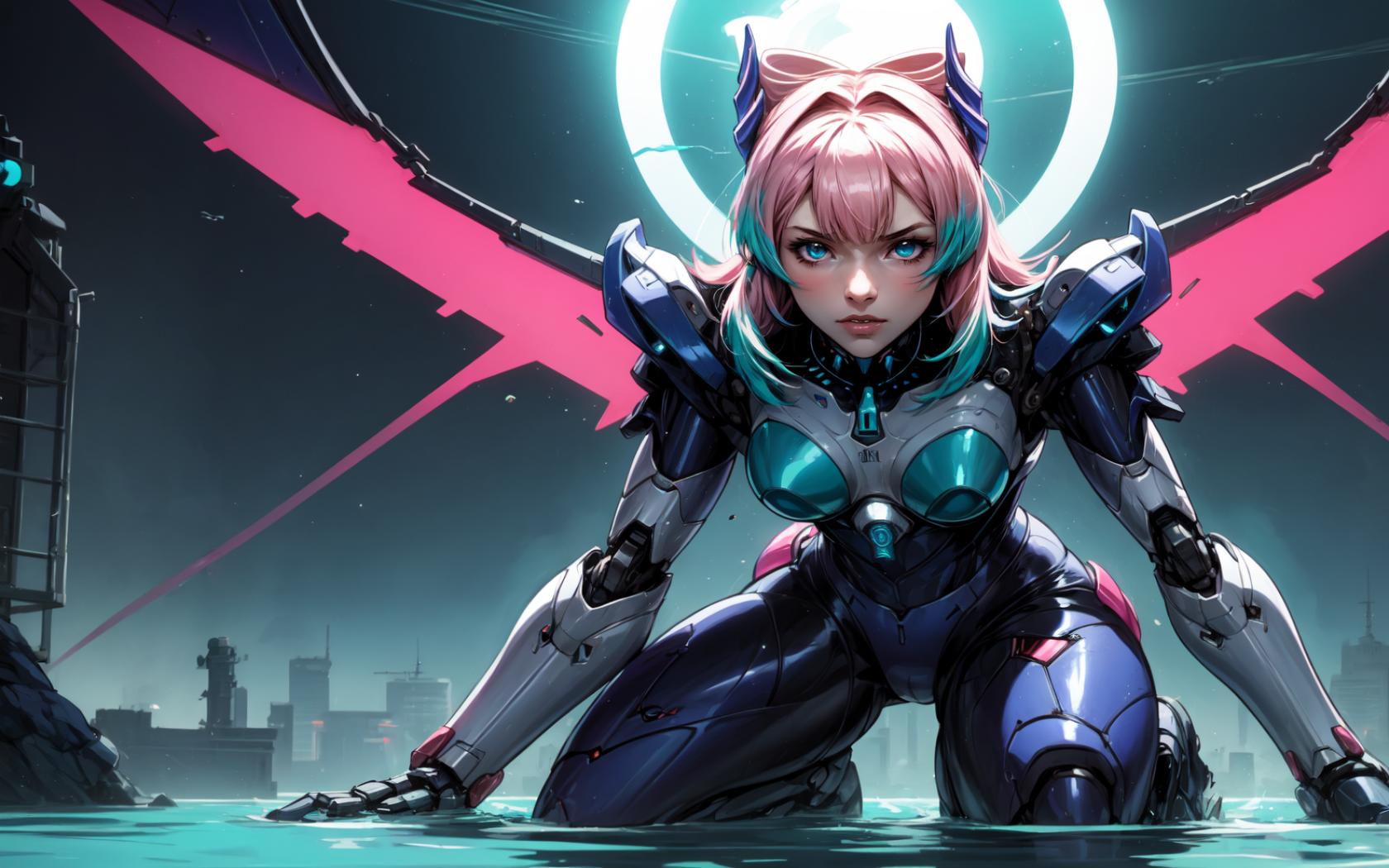 <lora:AMechaSSS[color_theme,mecha musume, mechanical parts,robot joints,headgear]:0.8>solo,alone,