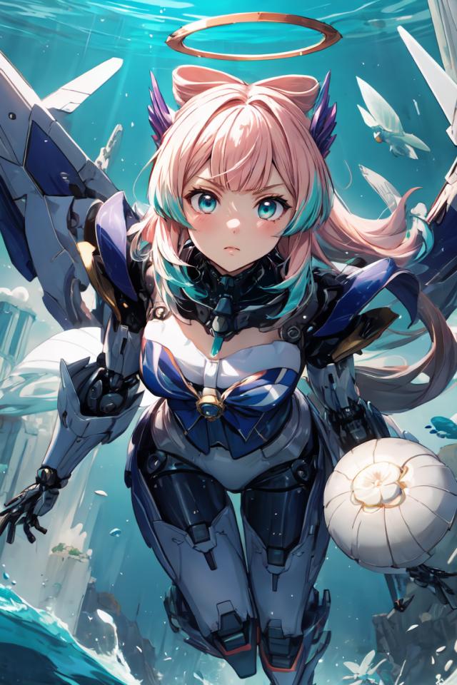 <lora:AMechaSSS[color_theme,mecha musume, mechanical parts,robot joints,headgear]:0.8>solo,alone,