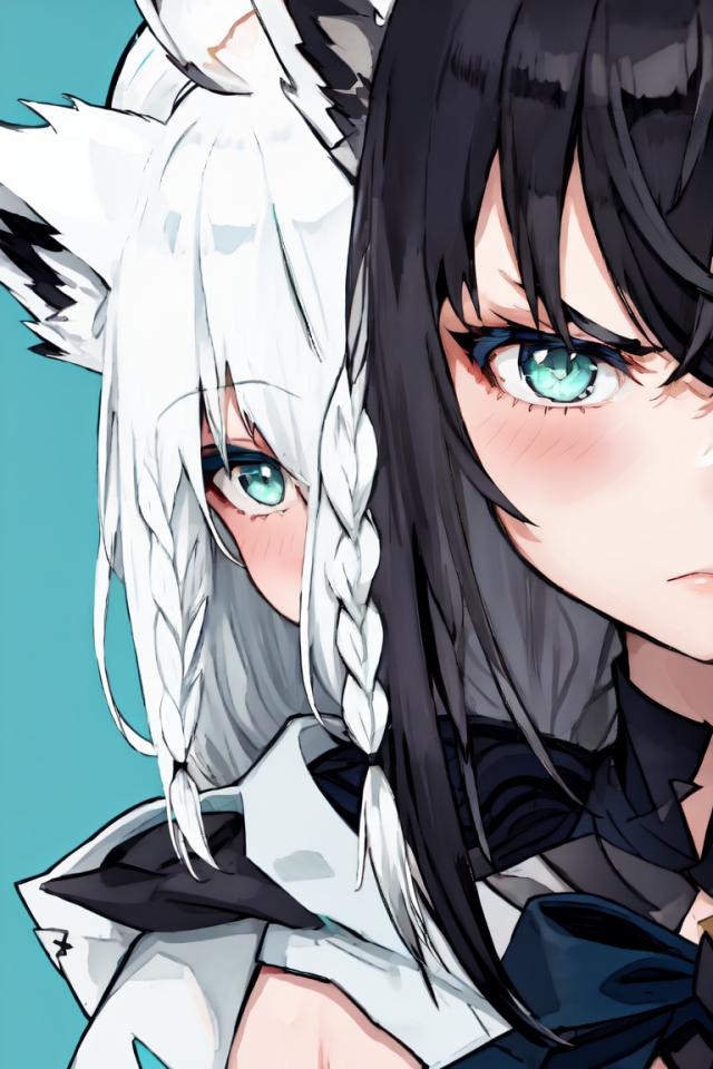 | Prompt | <lora:fubuker1-000007:0.7> fubuki1, white hair , cute,kawai,happy, smiling, facing viewer, close view portrait, AND <lora:fubuker1-000007:0.8> kurokami, angry,evil,black hair, facing viewer, close view portrait, |