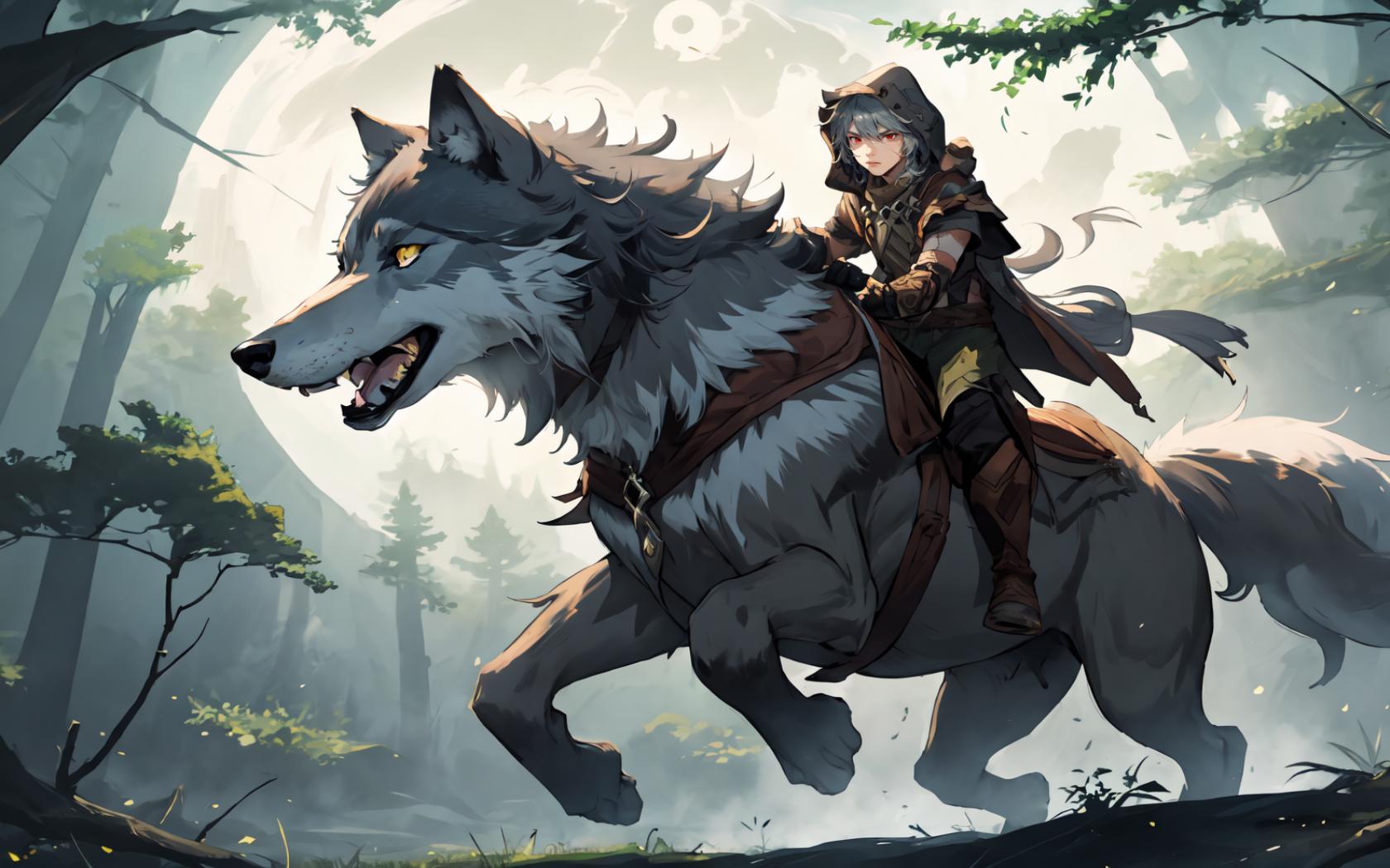 | Prompt | <lora:riding_a:0.3>((riding on a huge agressive detailed realistic grey wolf)),
