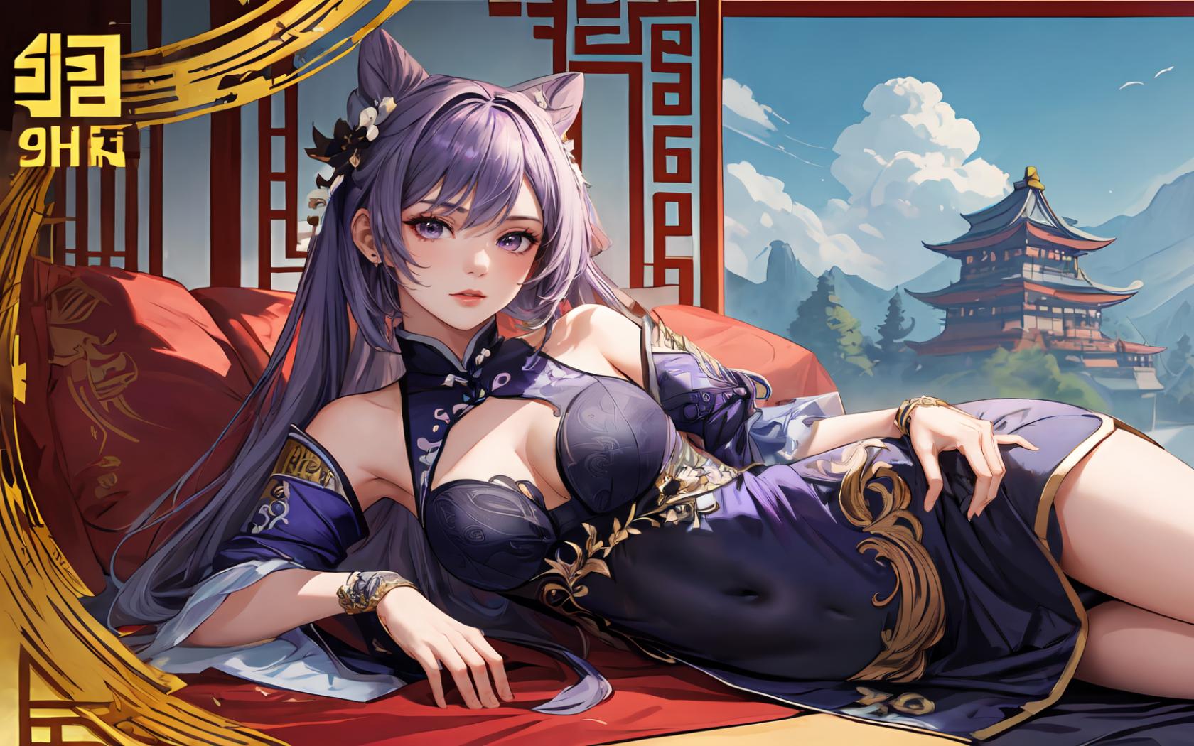 | Prompt | <lora:keqing1:0.8> keqingrnd, ,((hair ears,solo)),purple hair,long hair,