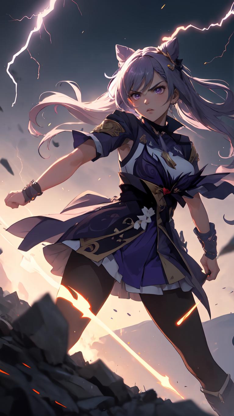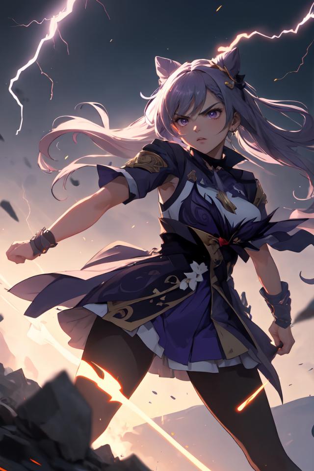 | Prompt | <lora:keqing1:0.9> close view of keqingdef, ,hair ears,