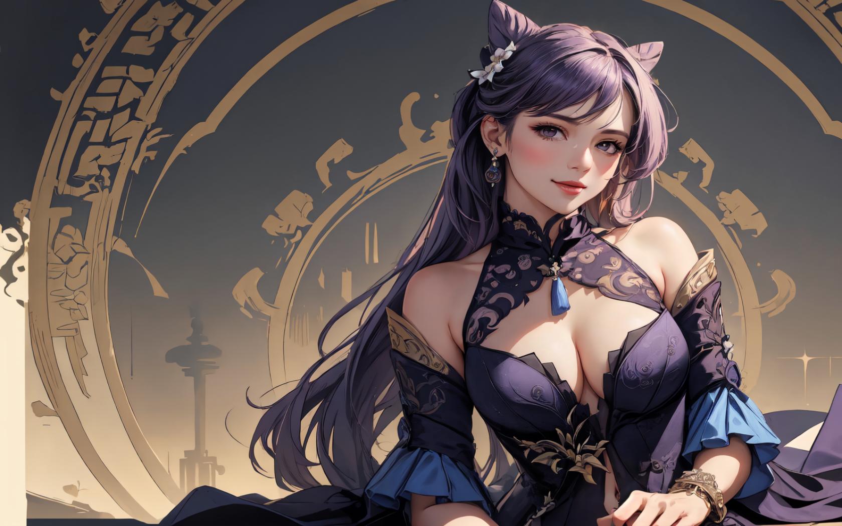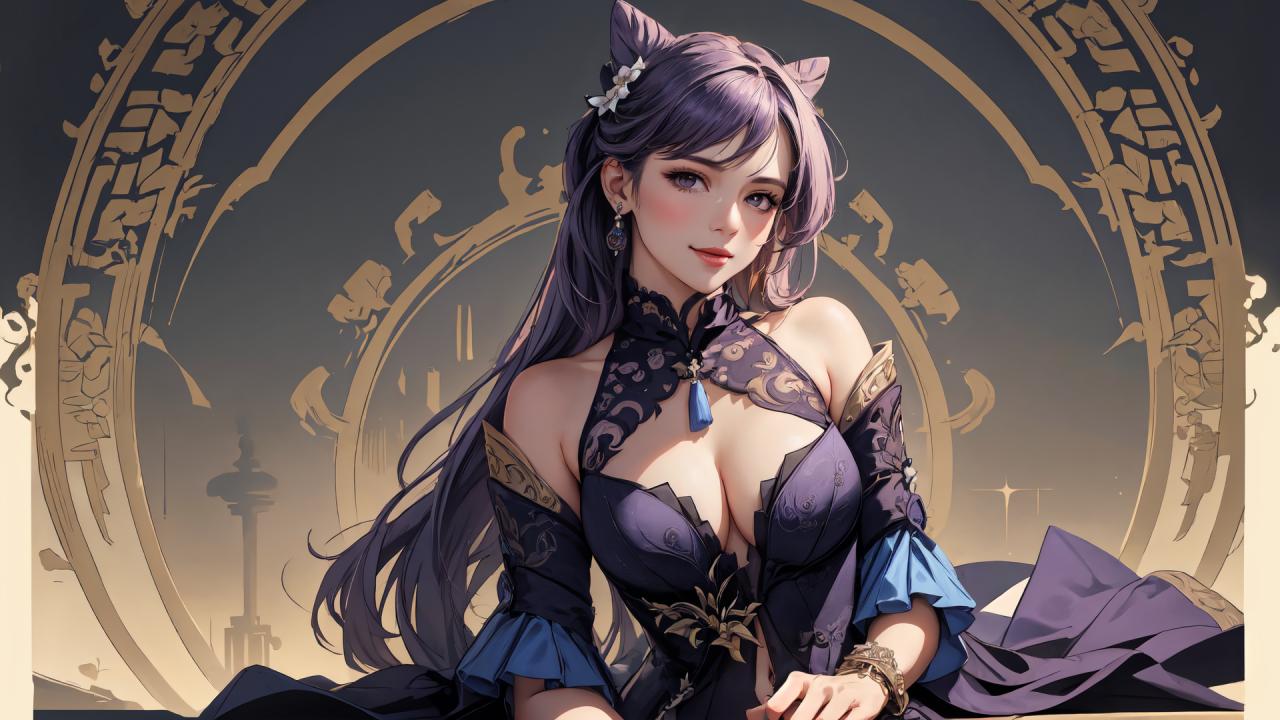 | Prompt | <lora:keqing1:0.9> close view of keqingrnd, ,((hair ears)),purple hair,long hair,