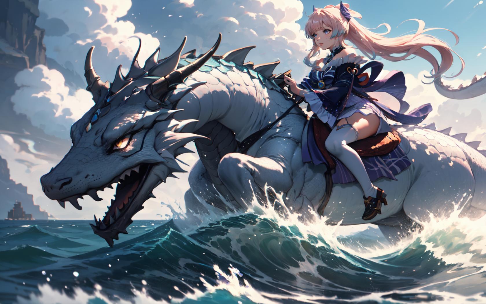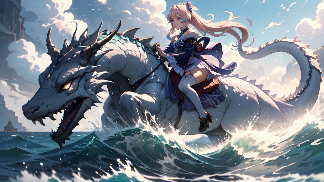 <lora:riding_a:0.2>((riding on a)) detailed realistic sea dragon,