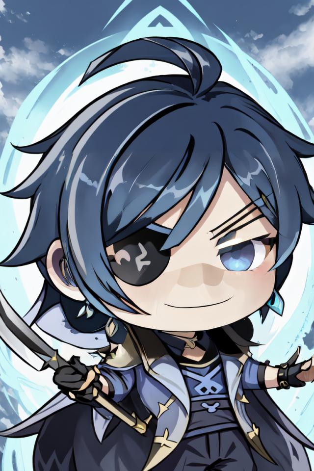 | Prompt | <lora:kaiya:0.9> kaeya (genshin impact), (1boy:1.4), (male focus:1.5), (eyepatch:1.2), dark-skinned male, solo, jewelry, blue hair, earrings, (long hair:1.1), blue eyes, single earring, dark skin, bangs, black fingerless gloves,