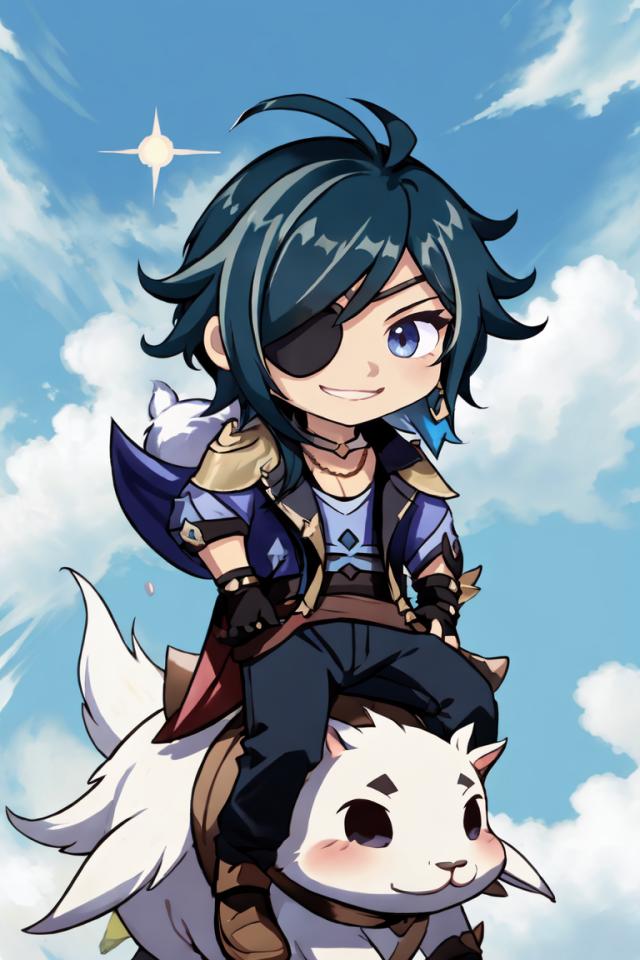 | Prompt | <lora:kaiya:0.9> kaeya (genshin impact), (1boy:1.4), (male focus:1.5), (eyepatch:1.2), dark-skinned male, solo, jewelry, blue hair, earrings, (long hair:1.1), blue eyes, single earring, dark skin, bangs, black fingerless gloves,
