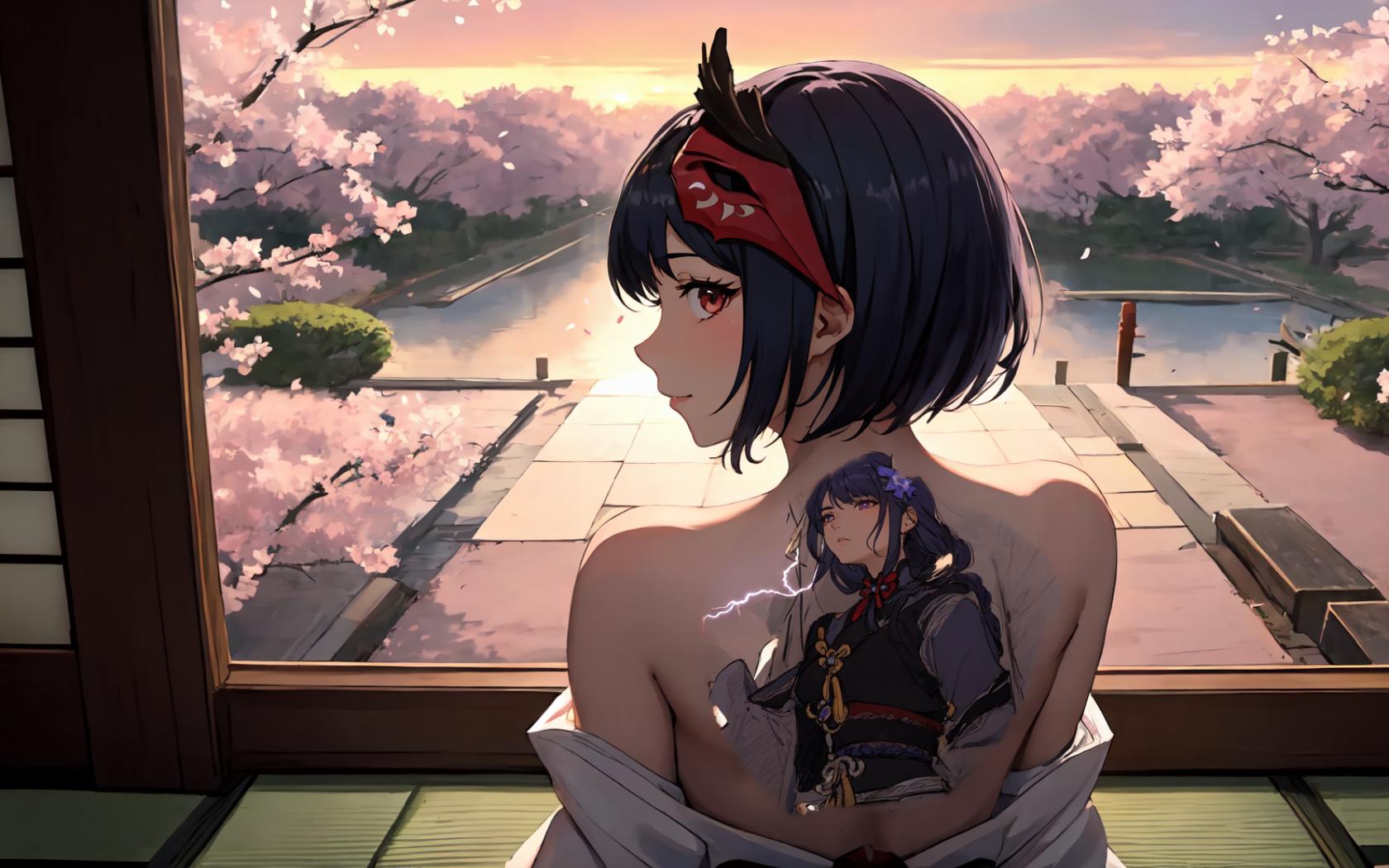 | Prompt | <lora:raidenshogun1:1>(romantic monochrome tattoo (sketch:1.5) of raidenshogundef portrait, serious, focused, ((heroic pose,drawing, thick outlines)), ((lightnings)), east asian architecture, scenery, clouds, <lora:raidenshogun1:0.7> ((((monochrome tattoo sketch of raidenshogundef)))), |