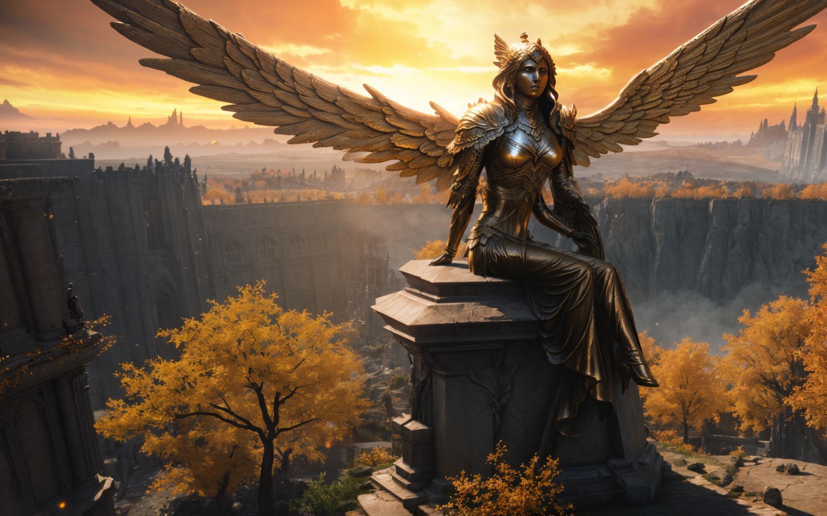 | Prompt | close view of (bronze) angel (statue:1.3) sitting with spread wings,