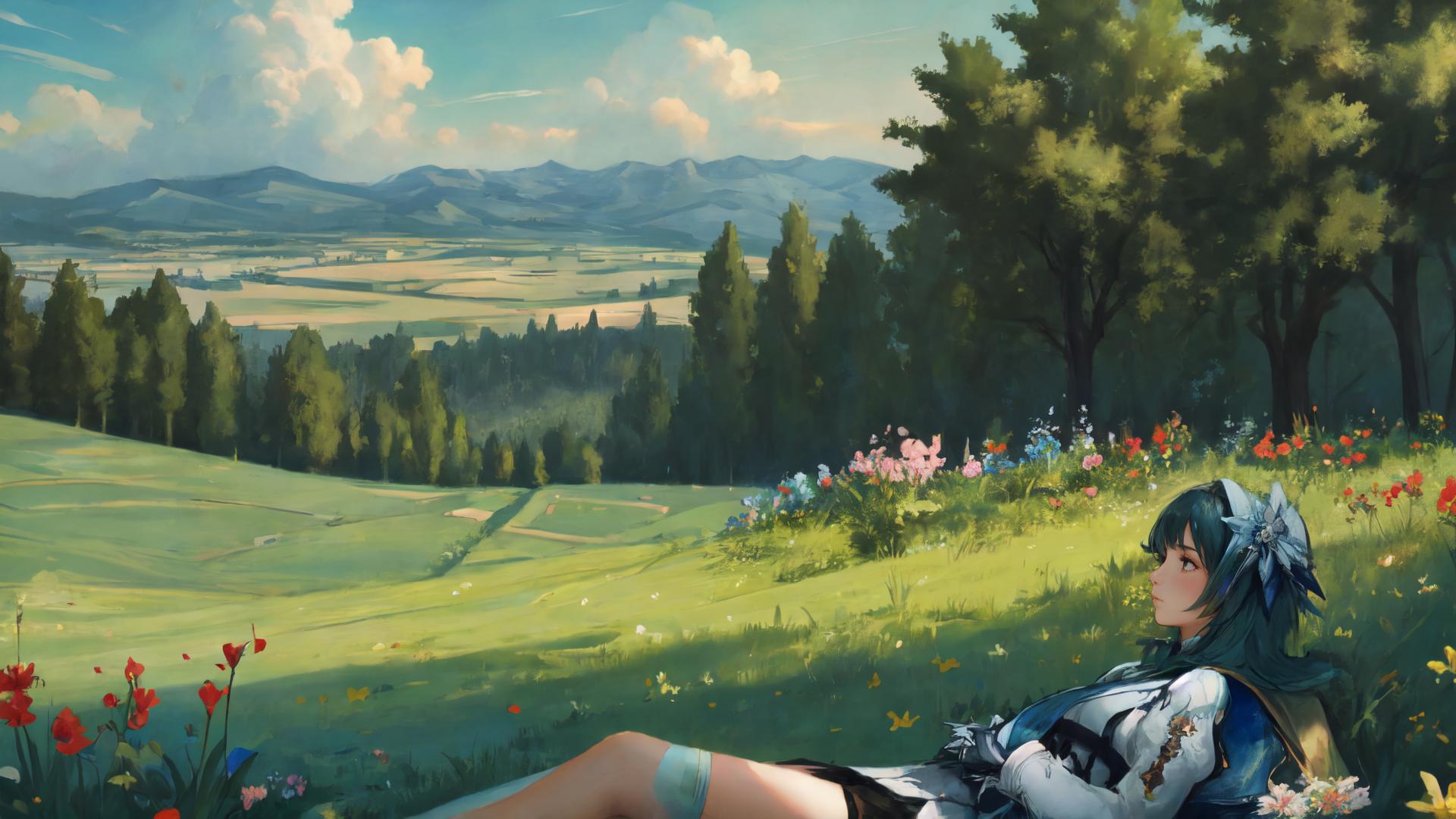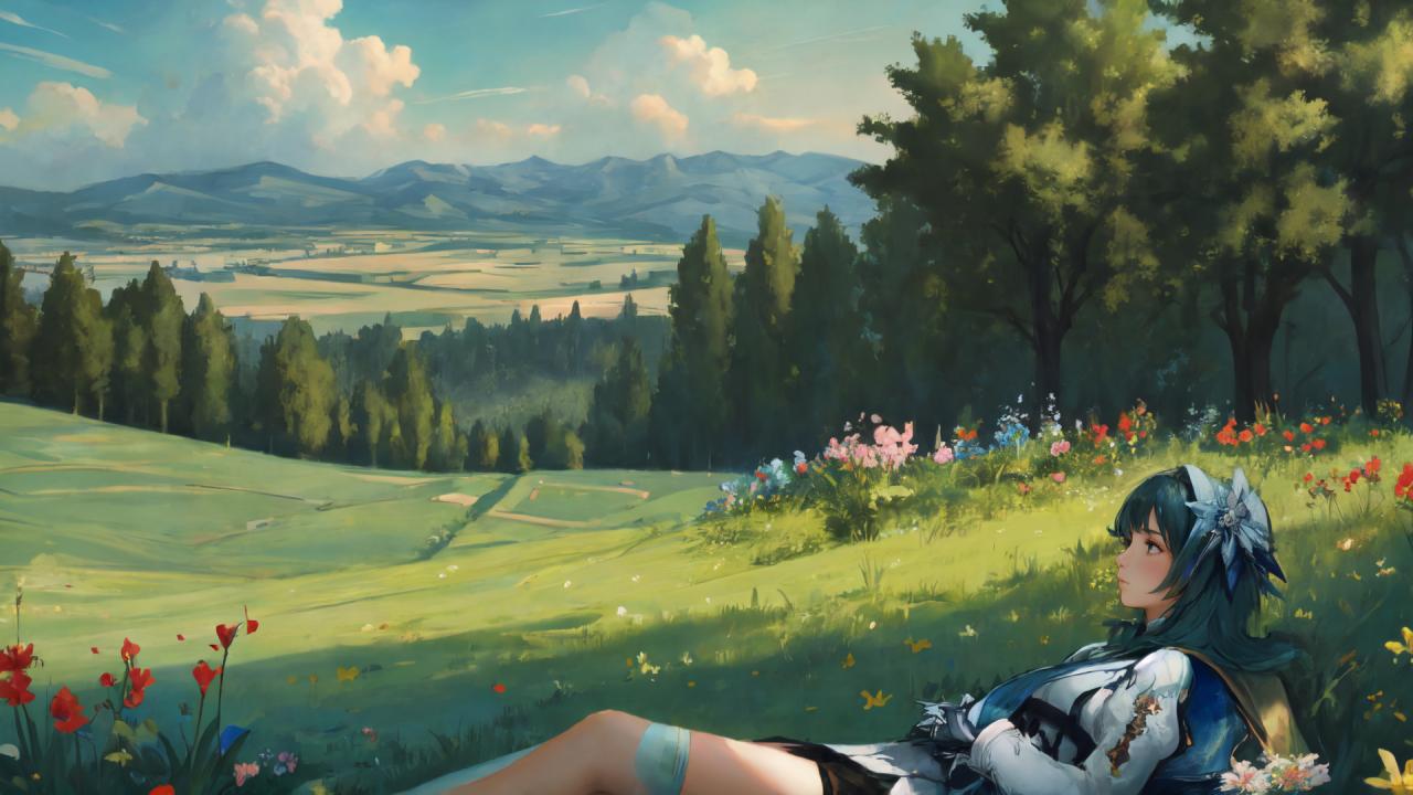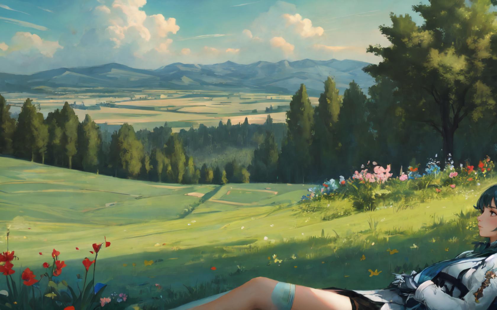 | Prompt | portrait of euladef, 1girl, lying in the grass, flowers,sad, pensive, looking at the sky, paify, romanticism, scenery, spring, <lora:woafu_paintify:0.5> <lora:eula2-000009:1> |