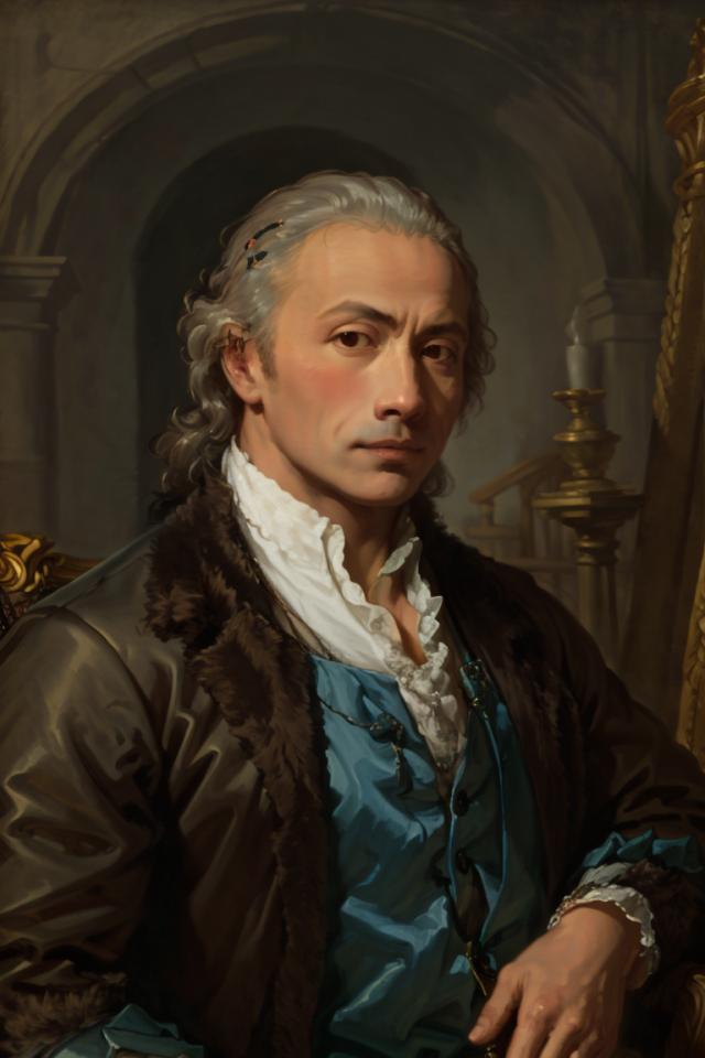 Prompt <lora:TheRockV3:1>portrait of th3r0ck, paify, fine art parody, rococo, <lora:woafu_paintify:0.8>