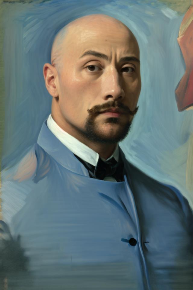 | Prompt | <lora:TheRockV3:0.8>th3r0ck,bald, paify, fine art parody, impressionism, <lora:woafu_paintify:0.8> |