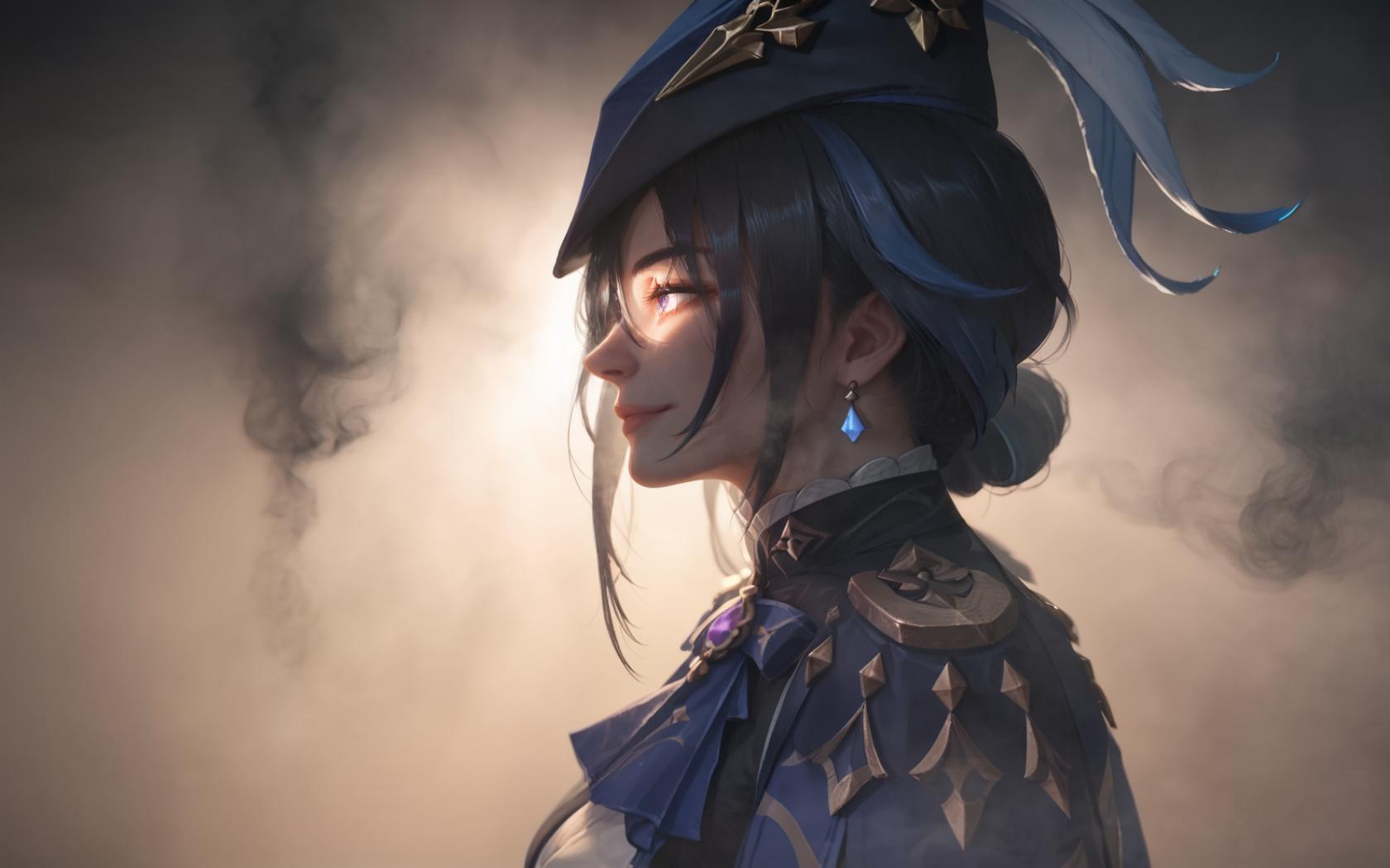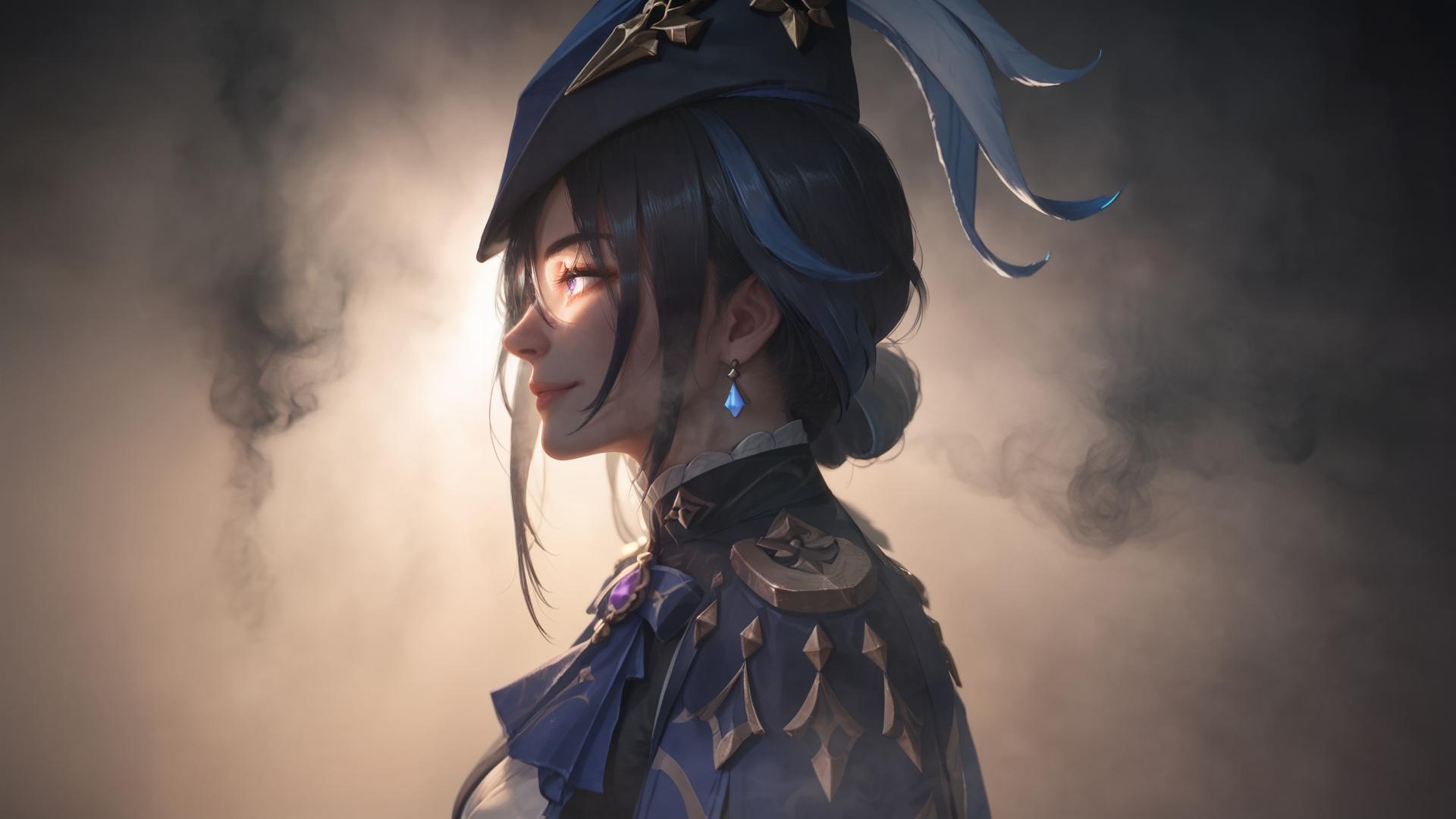 ((eye lighting))), 43stl1ght1ng, low light, dramatic lighting, darkness,((smoke)),