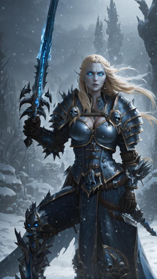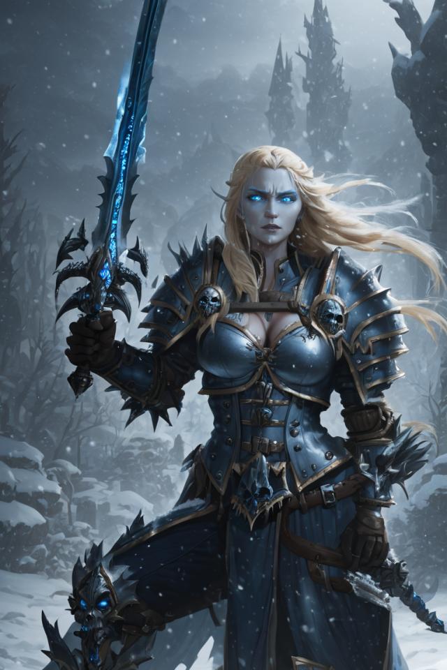 | Prompt | 1girl,wearing ((wlk-outfit)), looking at viewer,glowing blue eyes, very long blonde hair, heroic pose, holding sword, planted sword, snowing, ((snowstorm)), epic fantasy, <lora:armorify:1> <lora:Realistic000003_1_2.5DAnime_0.05_Merge1:0.5> |