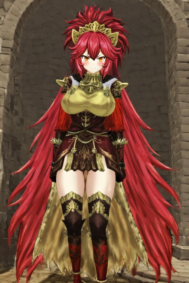 | Prompt | 1girl, (wearing radahn-outfit), large breasts, looking at viewer, agressive, full body, <lora:armorify:1> <lora:w3ers:0.7>w3ers, <lora:Realistic000003_1_2.5DAnime_0.05_Merge1:0.8> |