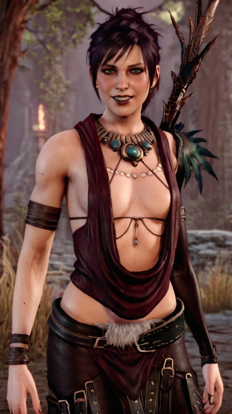 | Prompt | 1girl, wearing morrigan-outfit, light smile, serious, focused, epic fantasy background <lora:armorify:0.8> |