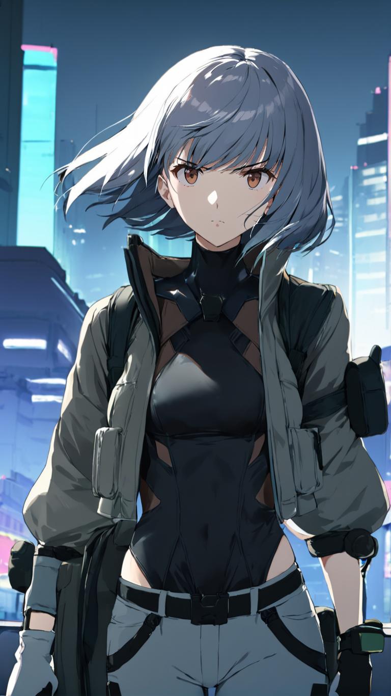 | Prompt | 1girl wearing ((sac2045outfit)), serious, focused, futuristic cyberpunk city background, <lora:armorify:1> |