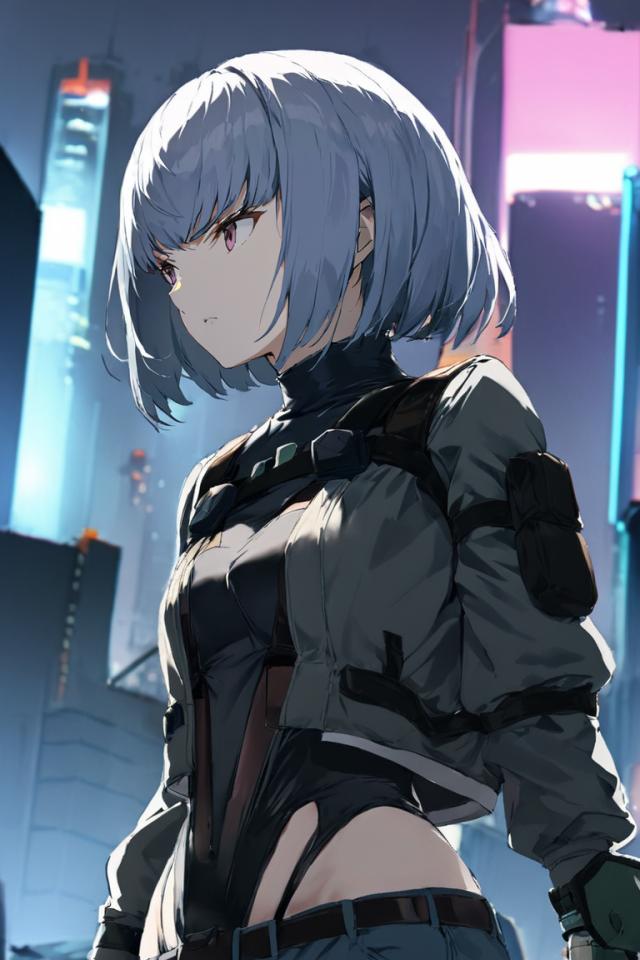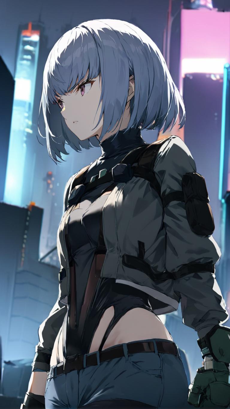 | Prompt | 1girl wearing ((sac2045outfit)), serious, focused, futuristic cyberpunk city background, <lora:armorify:1> |