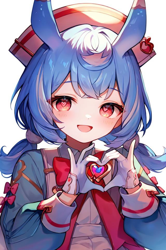 | Prompt | score_9, score_8_up, score_7_up, sig3winne, official_costume, solo, looking at viewer, smile, open mouth, simple background, white background, upper body, heart, :d, hands up, portrait, close-up, heart hands, heart in eye <lora:sigewinne:0.9> |