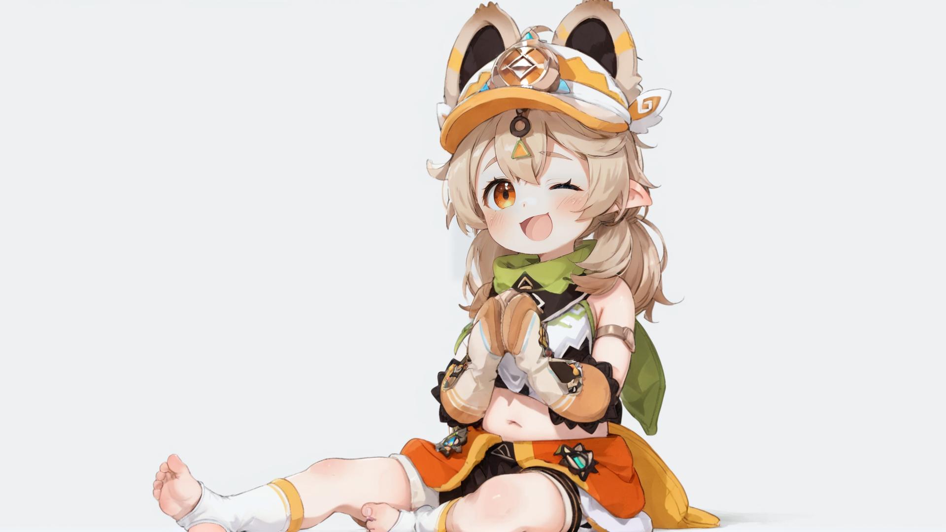 | Prompt | score_9, score_8_up, score_7_up, rating_safe, kachina, solo, looking at viewer, blush, smile, open mouth, simple background, red eyes, white background, holding, hair between eyes, twintails, sitting, full body, ahoge, sidelocks, one eye closed, barefoot, alternate costume, pointy ears, orange eyes, cosplay, fake animal ears, low twintails, wariza, light brown hair, ;d, feathers, toeless legwear, hat feather, afterimage, stirrup legwear, dodoco \(genshin impact\) <lora:kachina:0.9> |