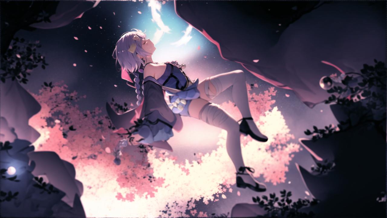 | Prompt | <lora:qiqi1:1.3>qiqidef,bandages,purple dress,banded arm, flat chest,shorts, very long hair,black jacket,yin yang, galaxy background, end of the world, ((mist)), ((Falling, tears in the wind)), 1girl, white bandages, , 1girl, bandages, bush, cherry blossoms, closed eyes, cloud, forest, full moon, in tree, moon, nature, night, night sky, outdoors, short hair, sitting in tree, sky, solo, star \(sky\), starry sky, thighhighs, tree, white legwear |