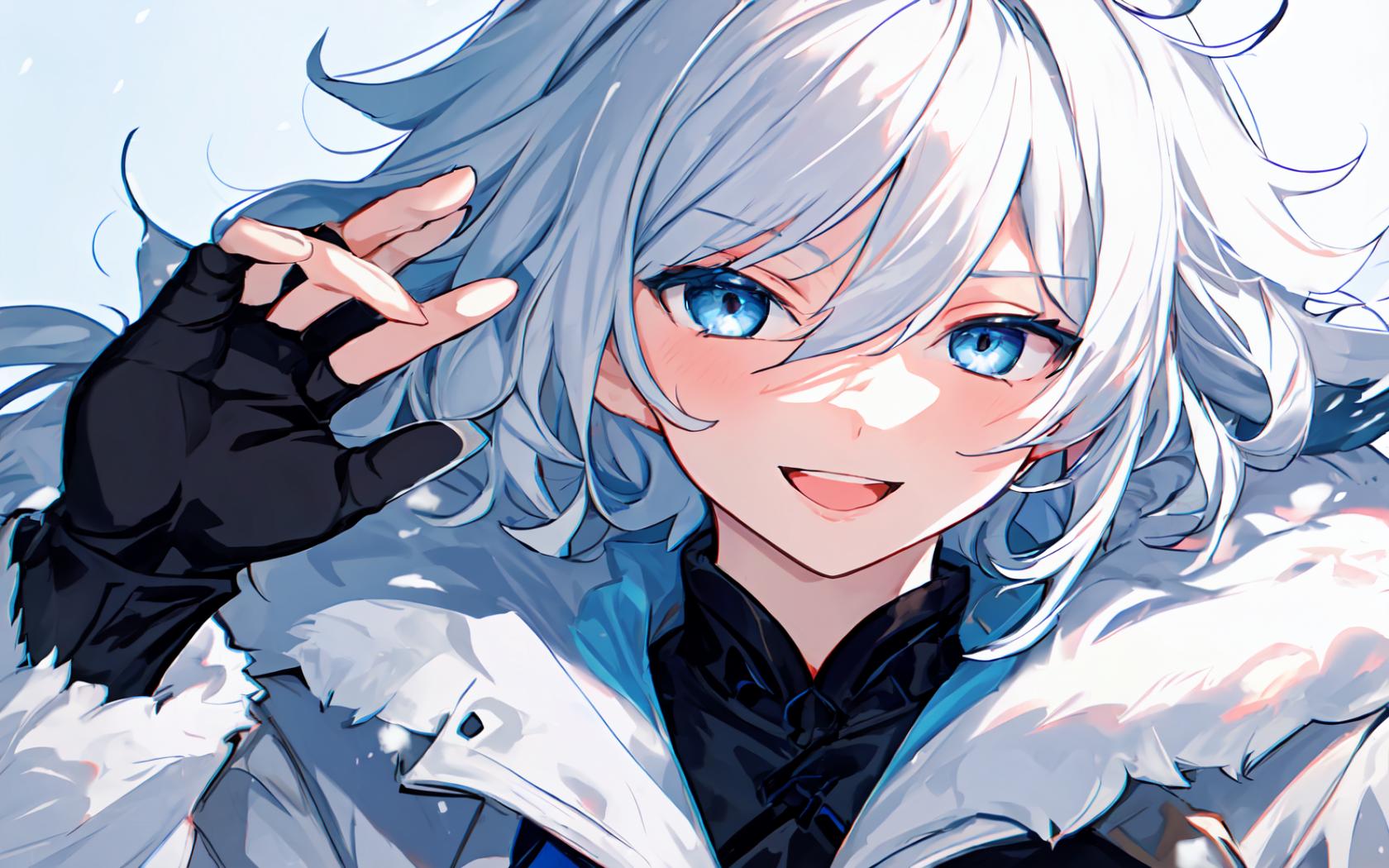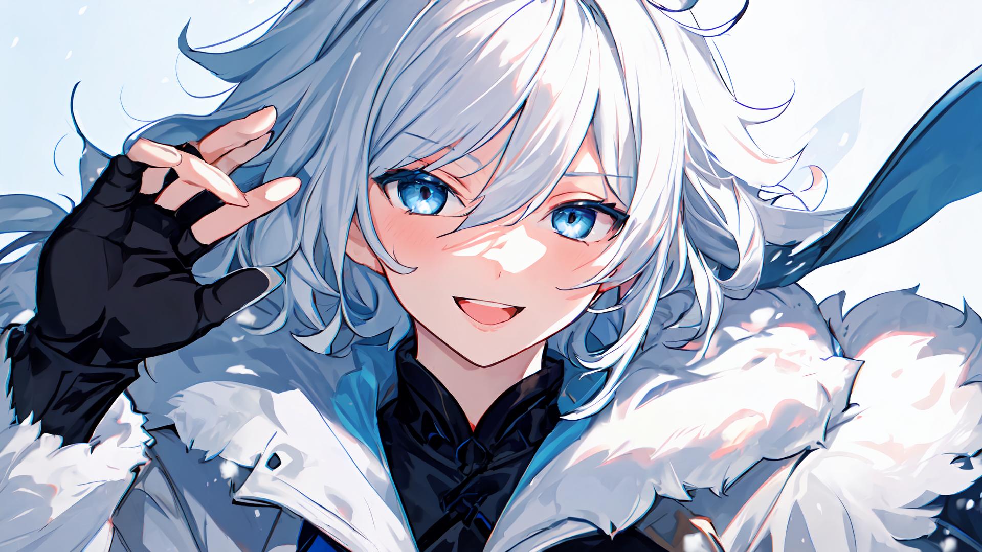 | Prompt | <lora:chongyun:0.8>1boy, blue_eyes, white hair, short,huge ahoge, [hair between eyes], winter coat, fur-trimmed collar, fur-trimmed coat, long sleeves, gloves, black leggings,