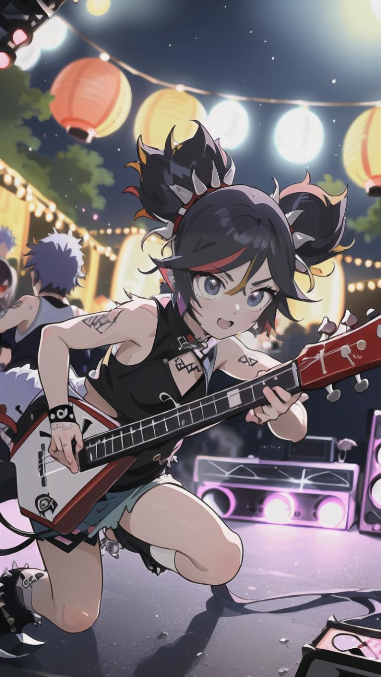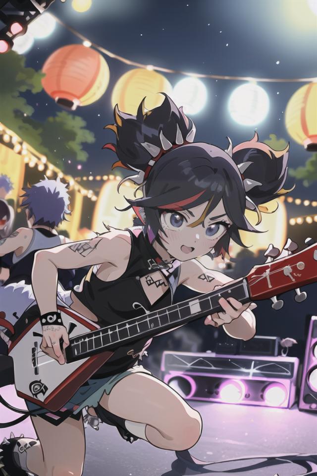 (((playing guitar,performing an outdoors rock concert night))),